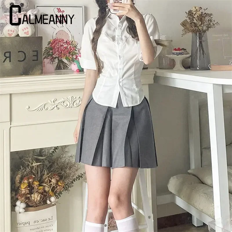 Summer Women Korean Fashion Leisure Slim Shirts Sexy Crop Blouses Elegant Vneck Short Sleeve Sweet Chic Formal Shirt Top Office