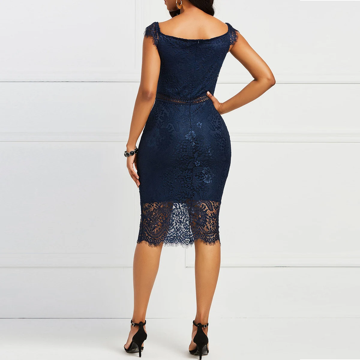 Temperament Mode Hals Korte Mouwen Kanten Jurk