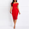 Summer women sexy short-sleeved V-neck lace dress casual women fashion slim-fit dress