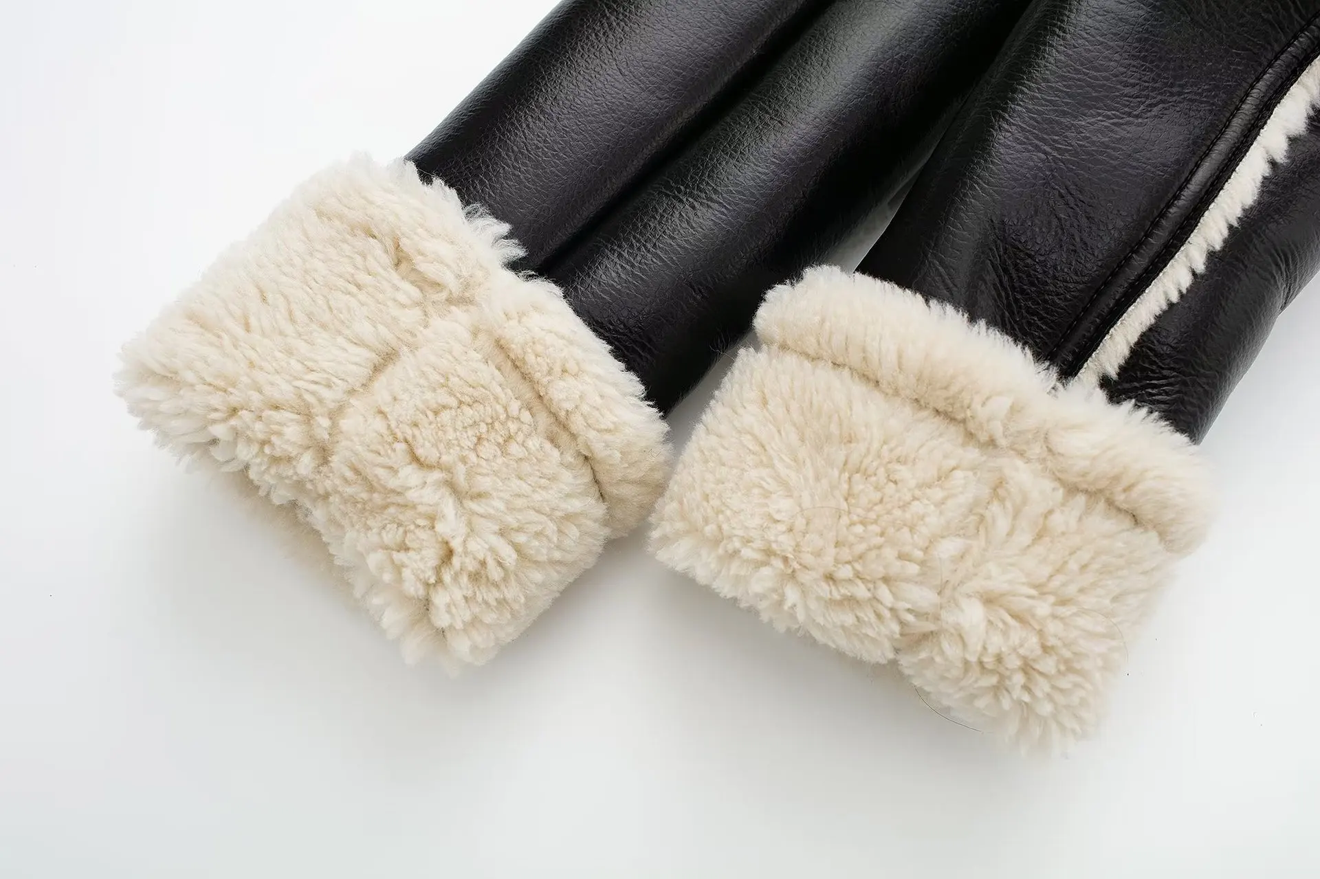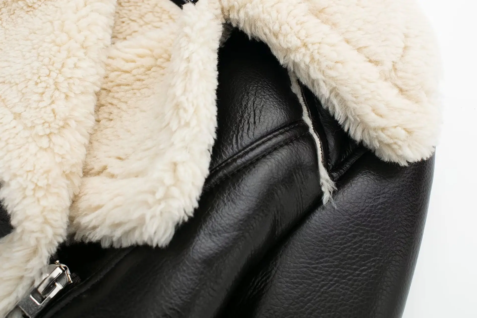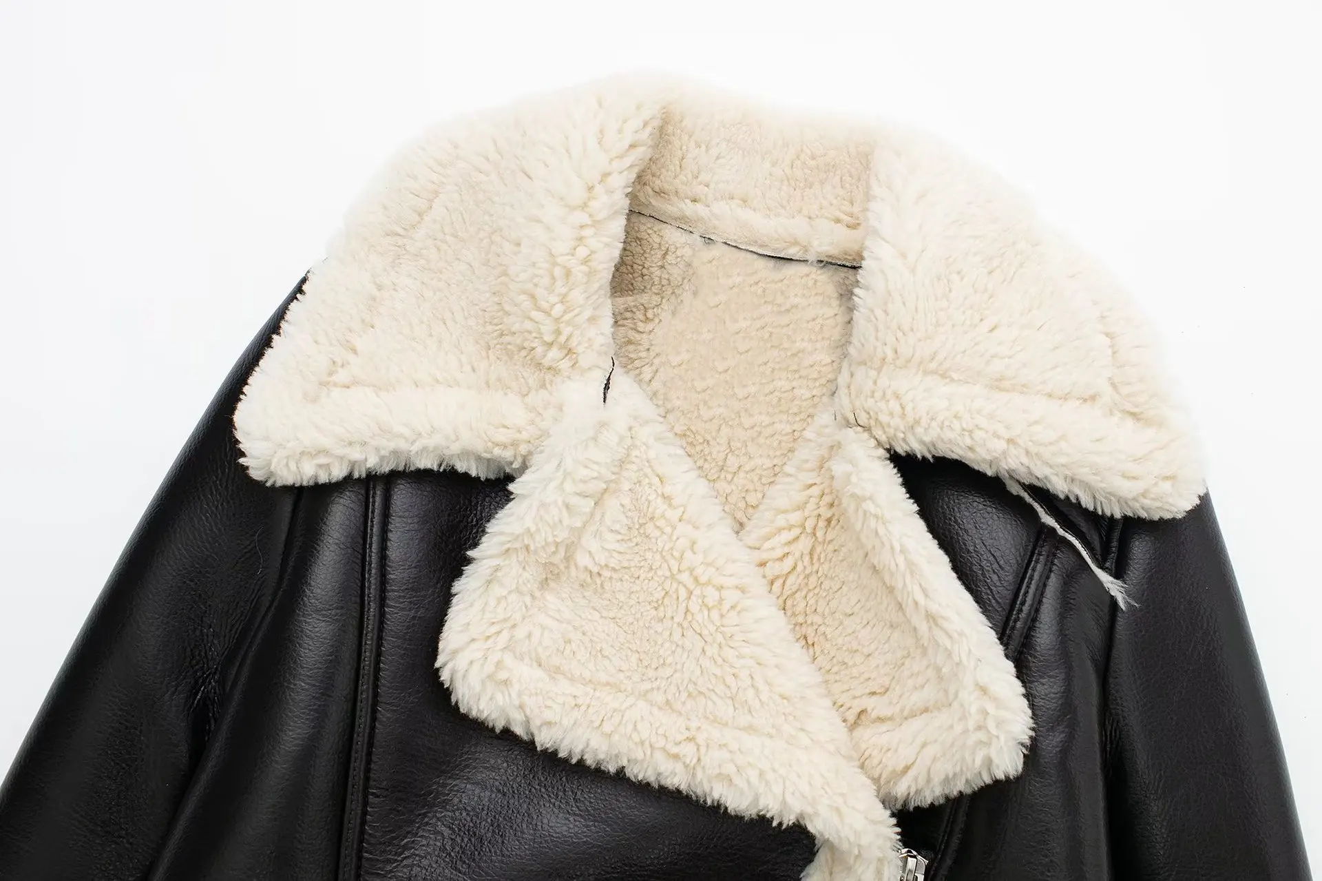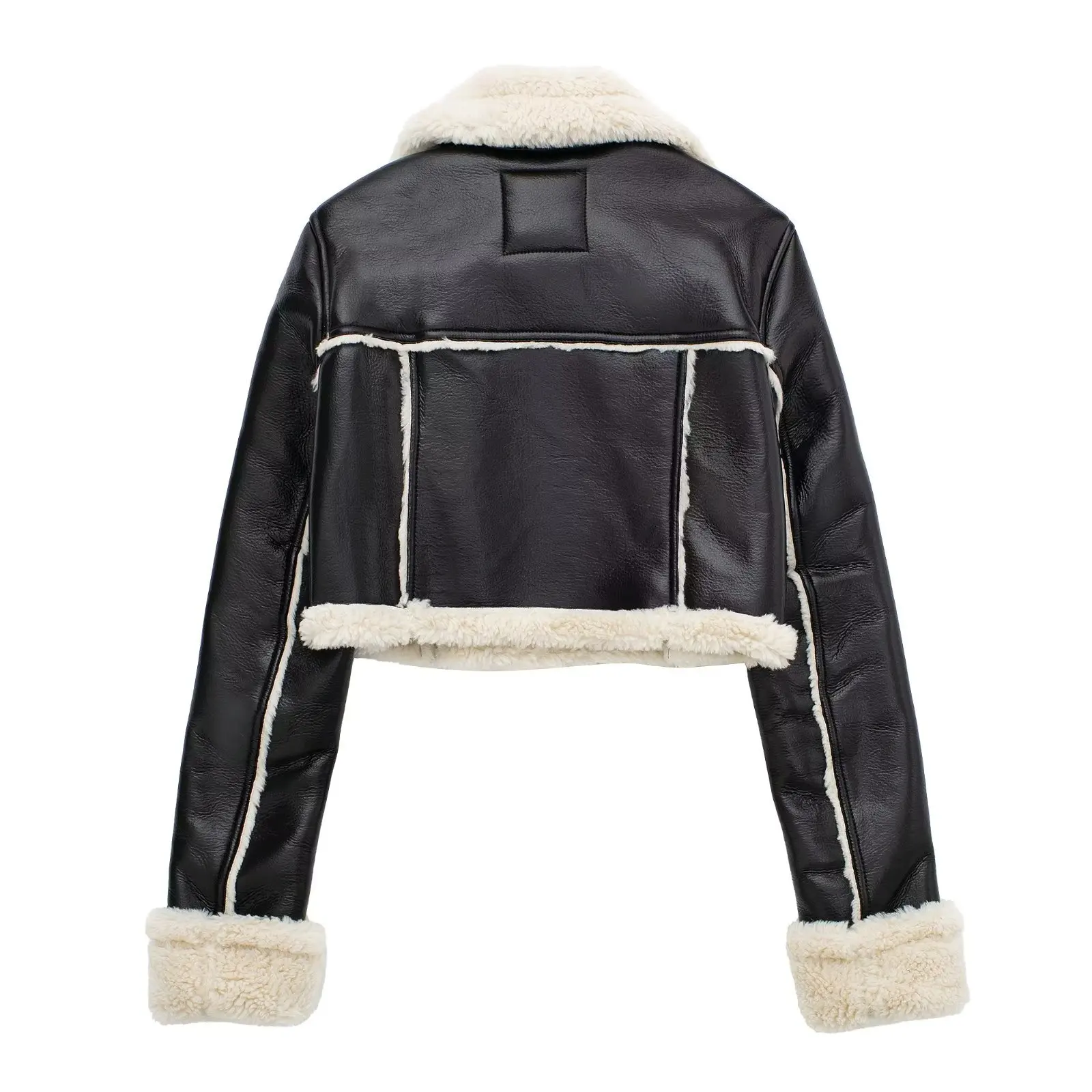 Suninheart Fashion Double Sided Short Jacket Women Warm Thick Lapel Lambswool Coat Autumn Winter Vintage Female Fleece Chic Tops
