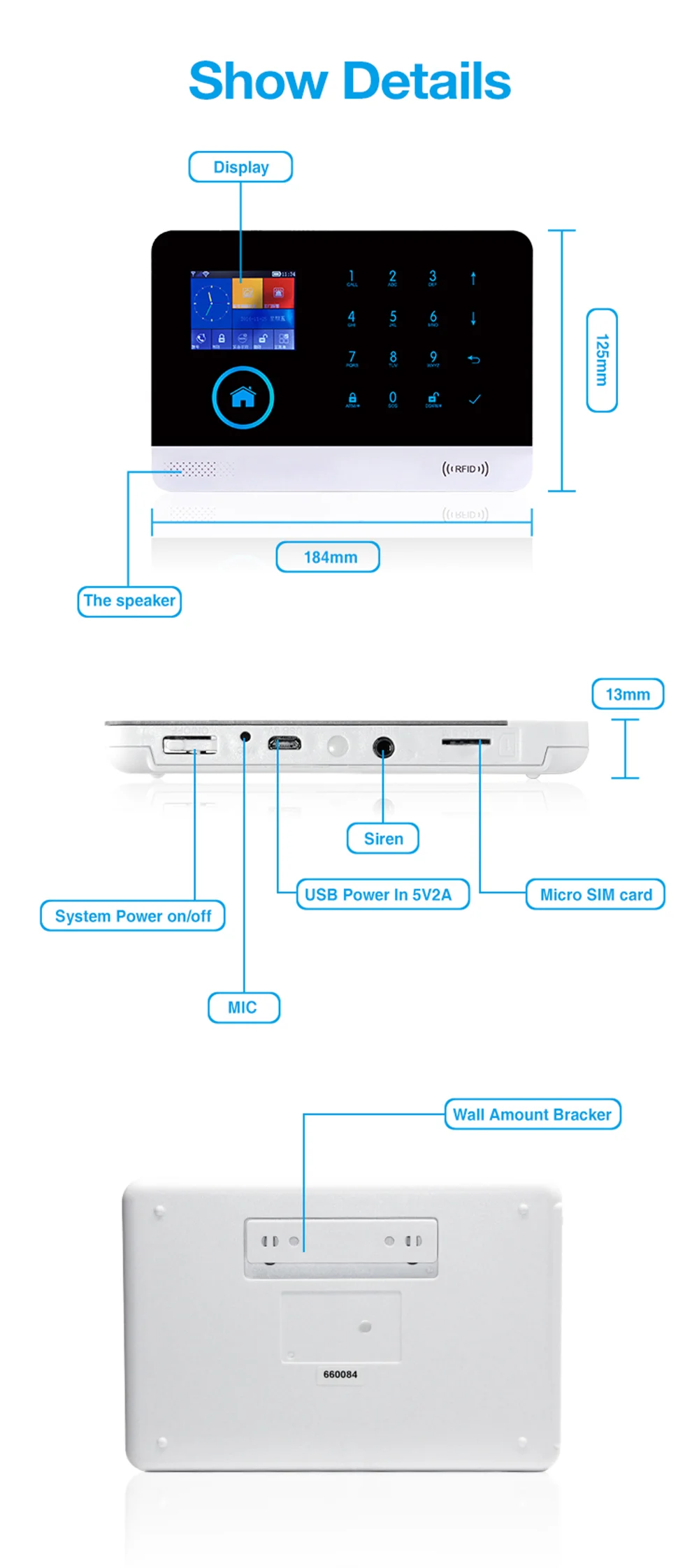 * Wifi and GSM/4G dual network, support APP push, voice monitoring and other channel alarm methods