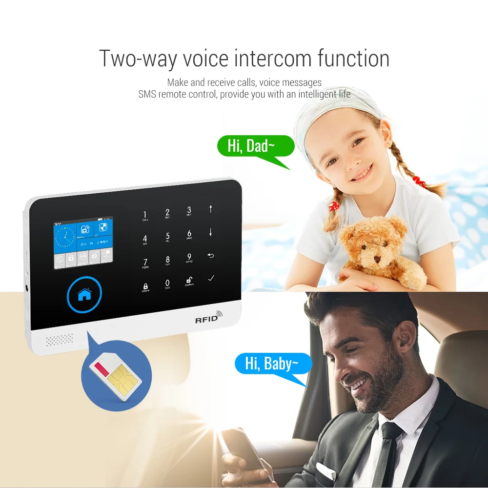 Set 4G-B:1*alarm host,1*manual,1*cable,2*infrared detector,2*door sensor,1*horn,2*remote control,2*RFID card