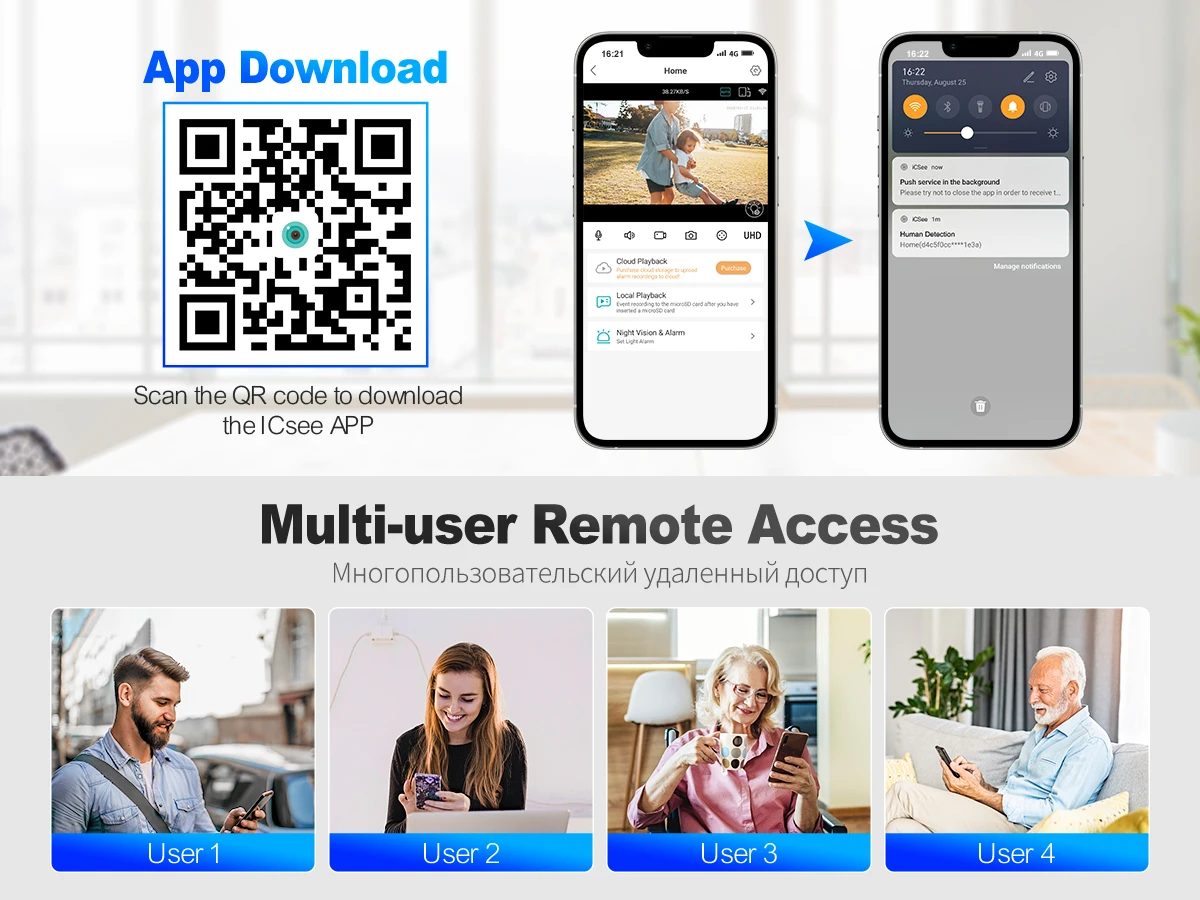Support iOS and Android Device Access. Scan QR-Code to login. Download free app in Apple App store / Google play.