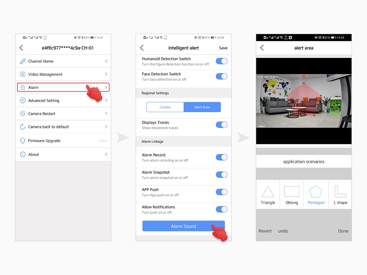 When Someone Breaks Into Shooting Area, The Camera Will Make Alarm Sound Alarm Messages Will Be Pushed To Your Phone App.