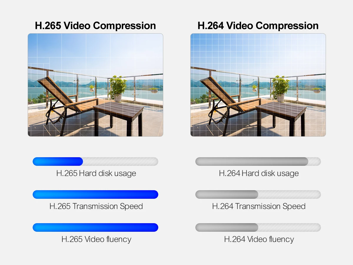 H.265 More Clear , HD resolution offer you best image quality in a lower bit rate.