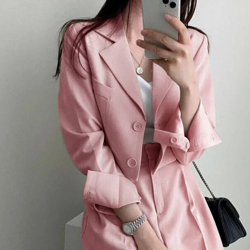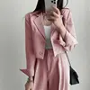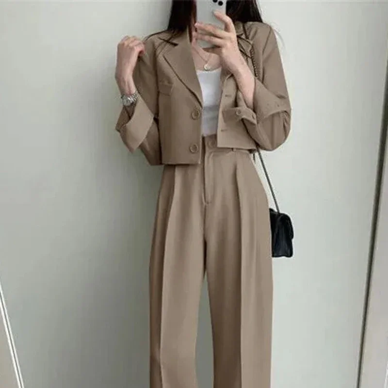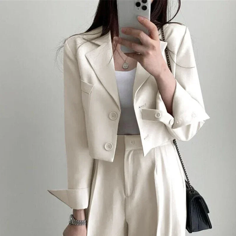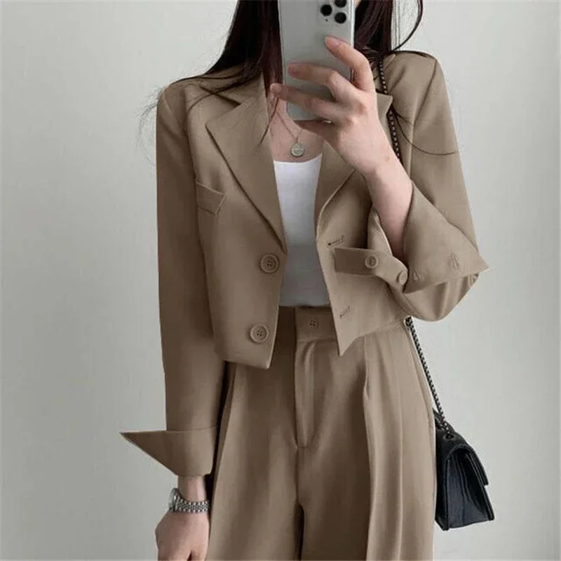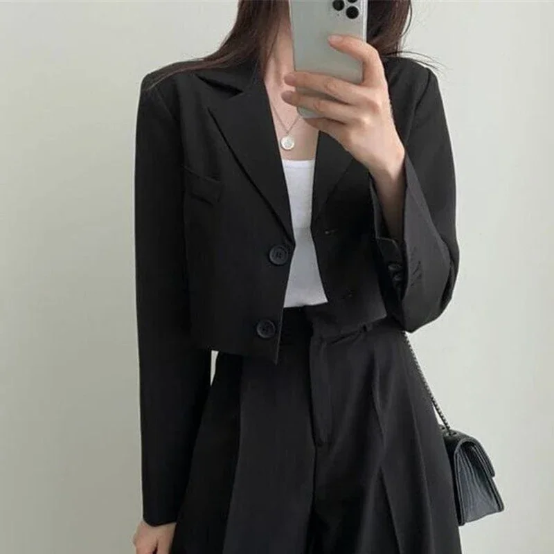 Temperament Cropped Blazer for Women Korean Fashion Office Long Sleeve Suit Coat Woman 2025 Single Breasted Chic Jacket Female