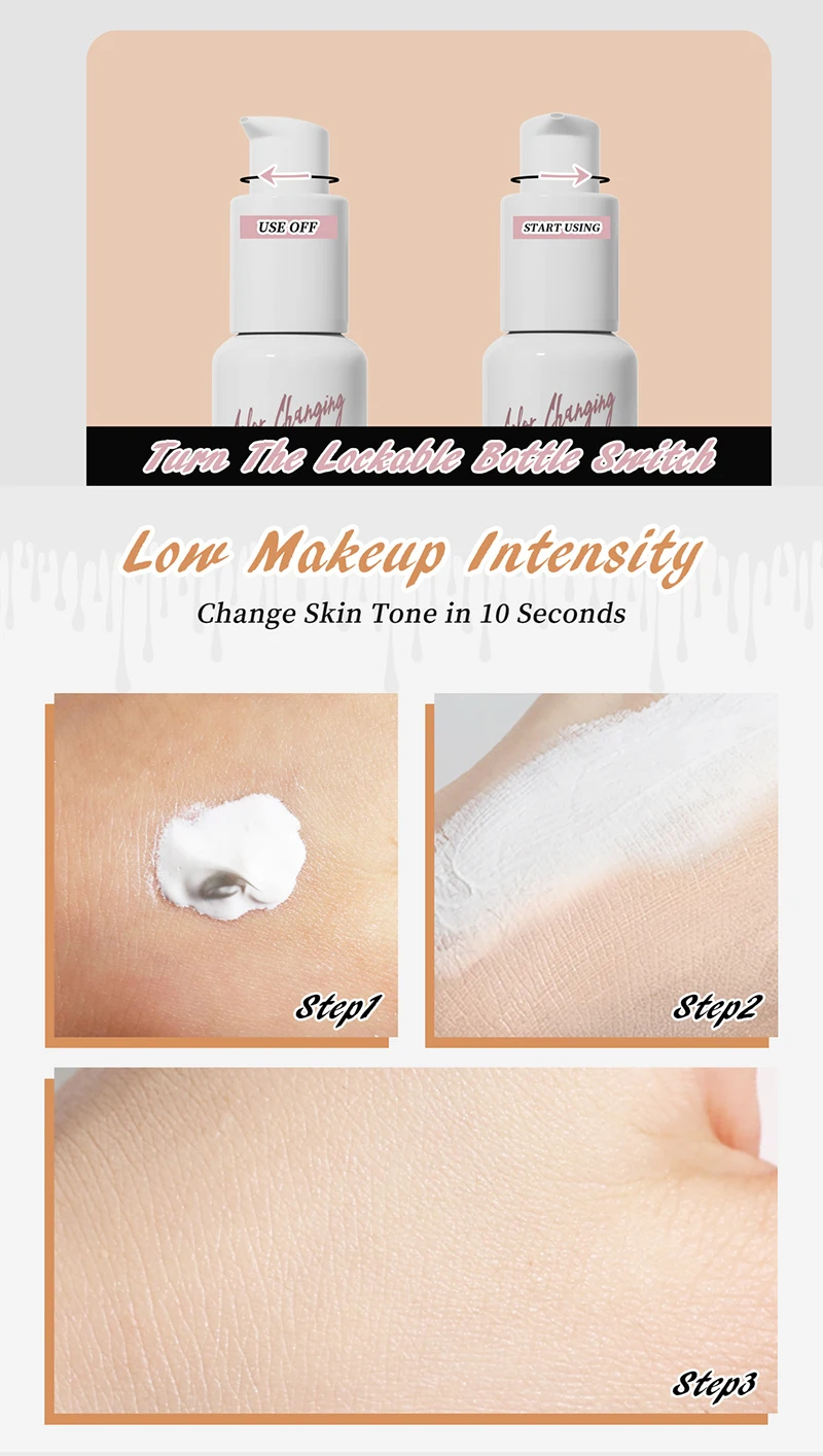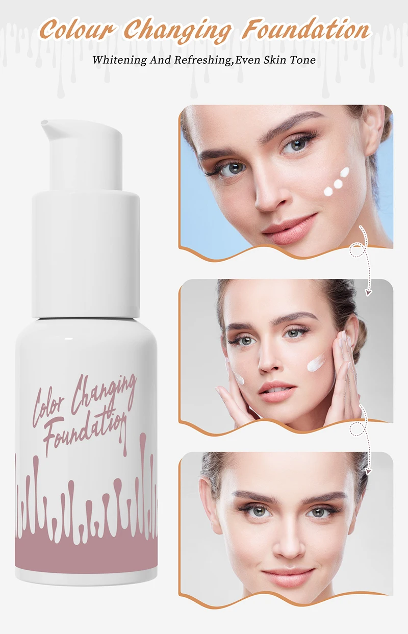 · Colour changing liquid foundation, self-adjusts and matches your exact skin tone, perfectly conceals facial imperfections, brightens skin tone, is long-lasting, oil-controlling