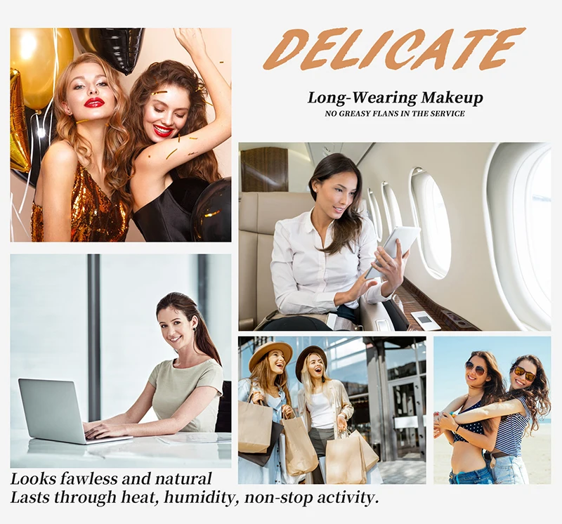 · The texture is light, easy to apply, evens out skin tone, absorbs quickly, and does not cause embarrassing situations such as floating powder and caking.