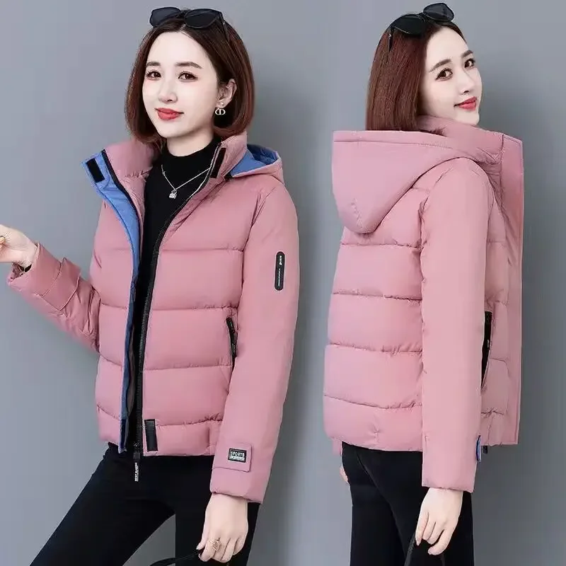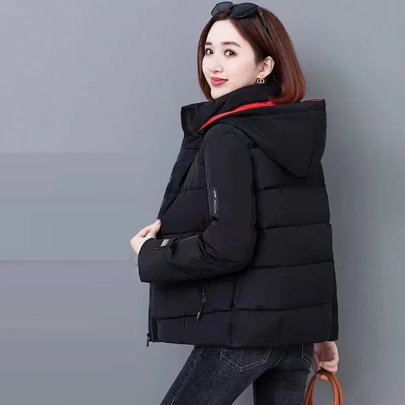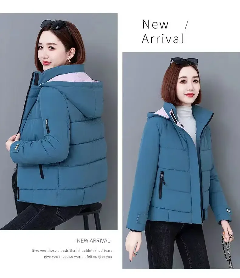 Thick Fleece Cotton Parkas Women Puffer Jacket Winter Fashion Warm Hooded Short Down Jacket Lady Casual Solid Zipper Padded Coat