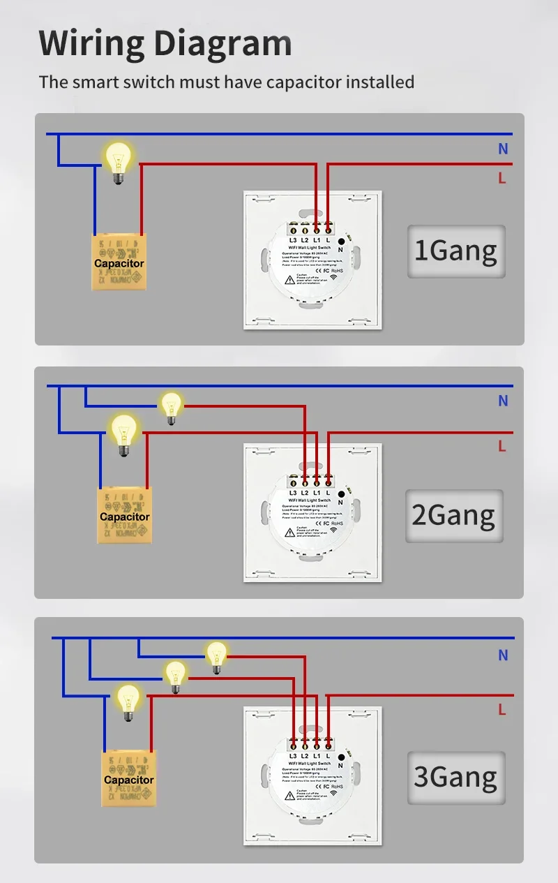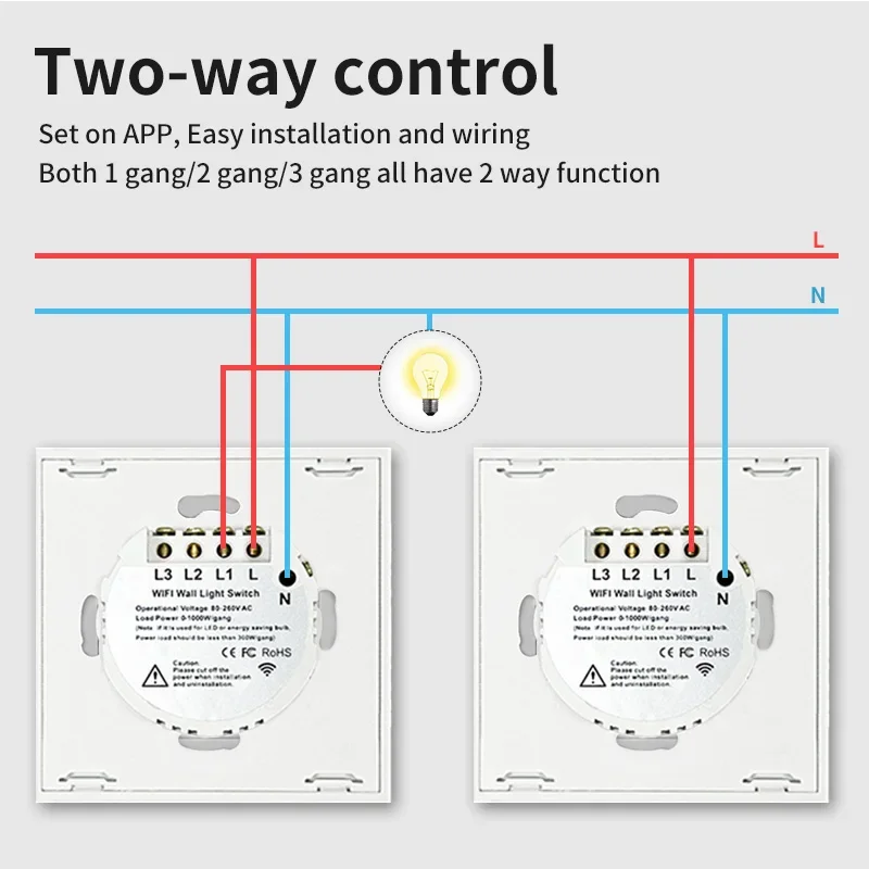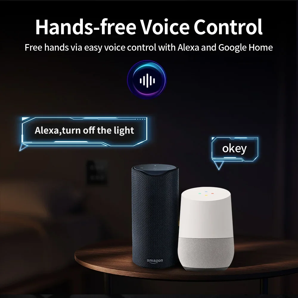 The switch is compatible with Alexa and Google Home Assistant, allowing you to use the voice control smart switch to turn on/off.