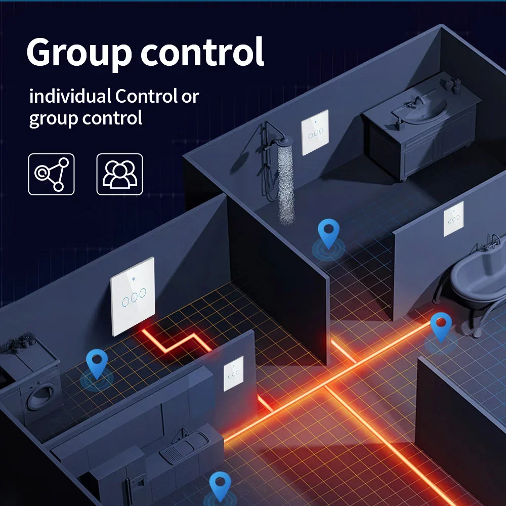 Tempered glass touch screen of this smart switch is sensitive to the touch of control, premium durable glass material provides up to 20 million touch figures through our rigorous testing. It is water-proof,Damp-Proof, Resists Scratches.