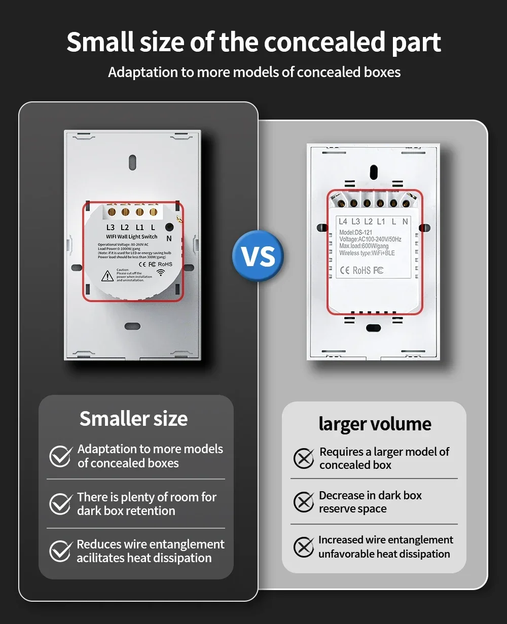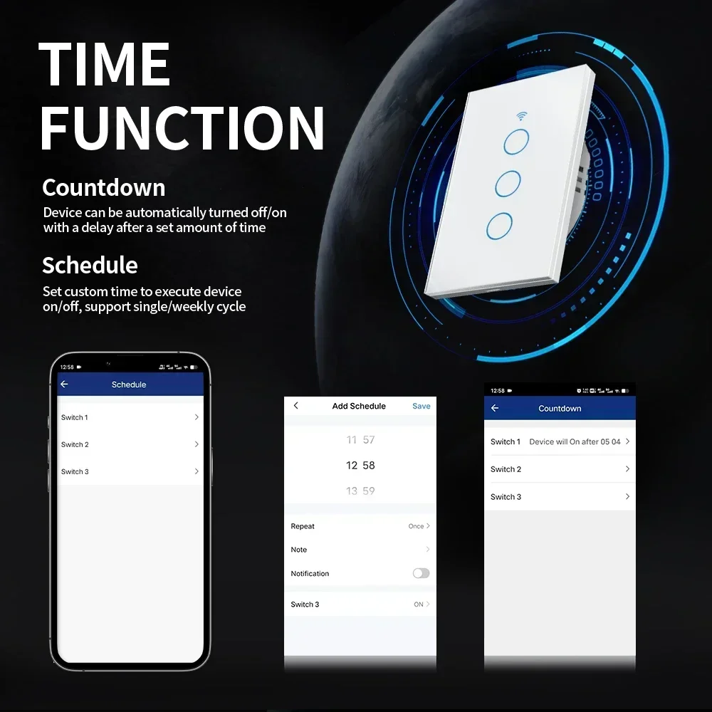 The switch is compatible with Alexa and Google Home Assistant, allowing you to use the voice control smart switch to turn on/off.