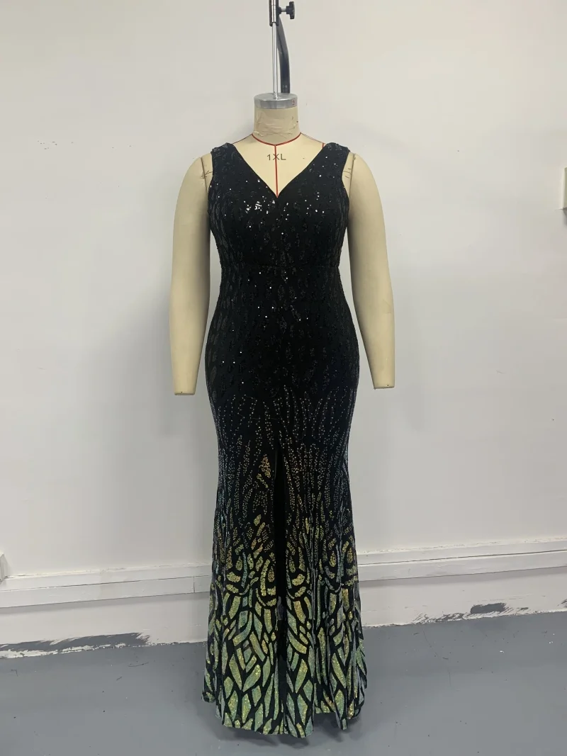 TOLEEN Women Plus Size Maxi Dresses Sequins Sexy High Slit Dress Fishtail Dress Fashion Sleeveless Party Vestidos de Novia