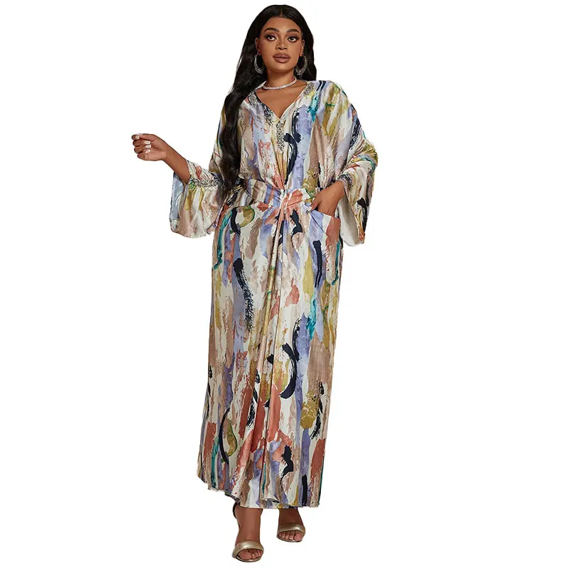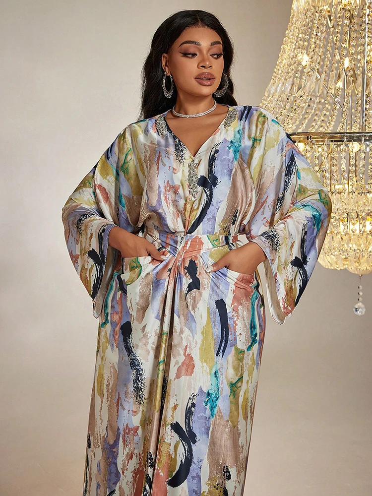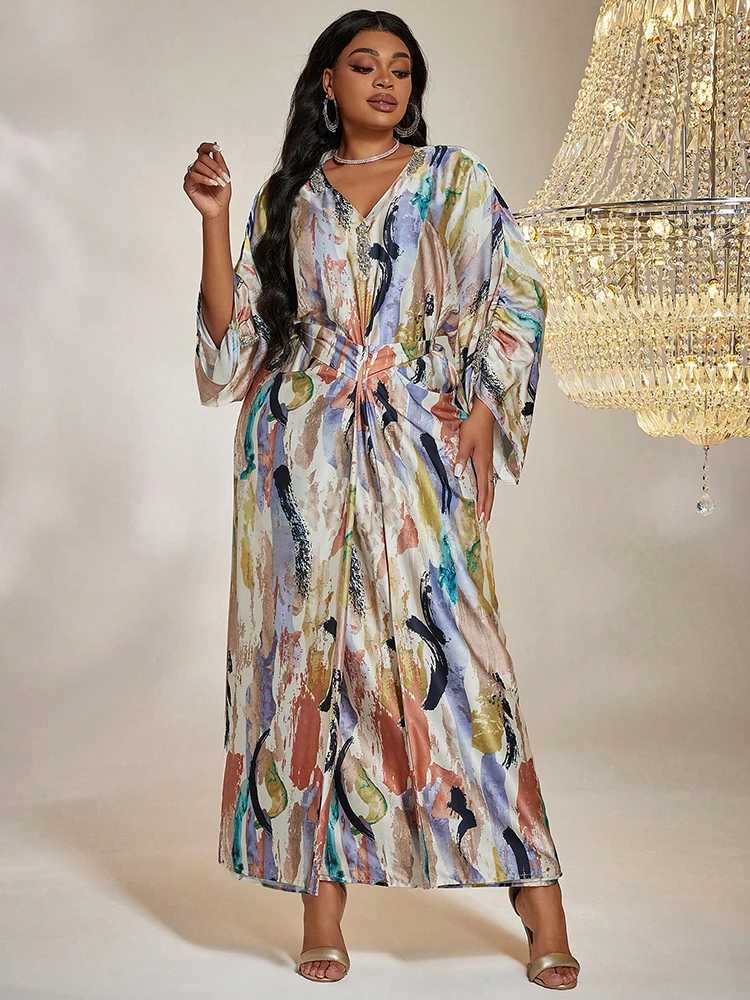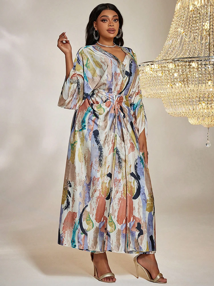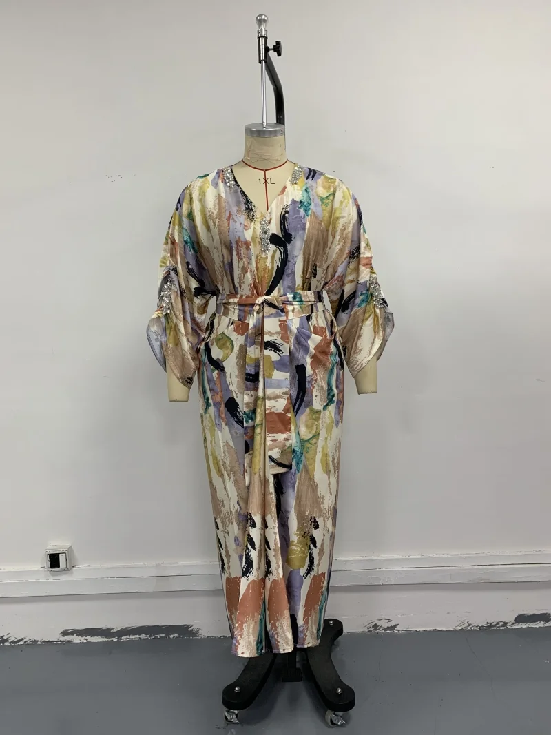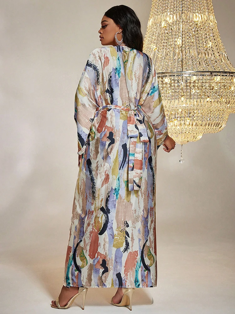 TOLEEN Women Plus Size Maxi Dresses Summer Casual Women’s Printed Dress Elegant Belt V-neck Bat Sleeve A Vestidos de Novia