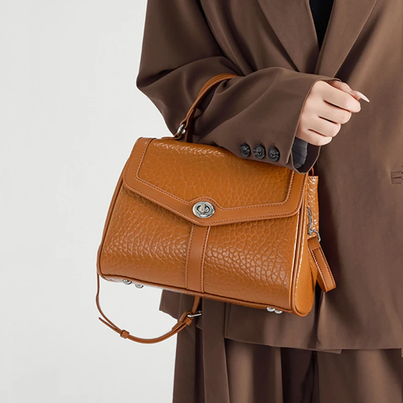 Toptrends Vintage Genuine Leather Tote Handbags For Women 2025 Luxury Designer Top Handle Satchel Ladies Shoulder Crossbody Bags