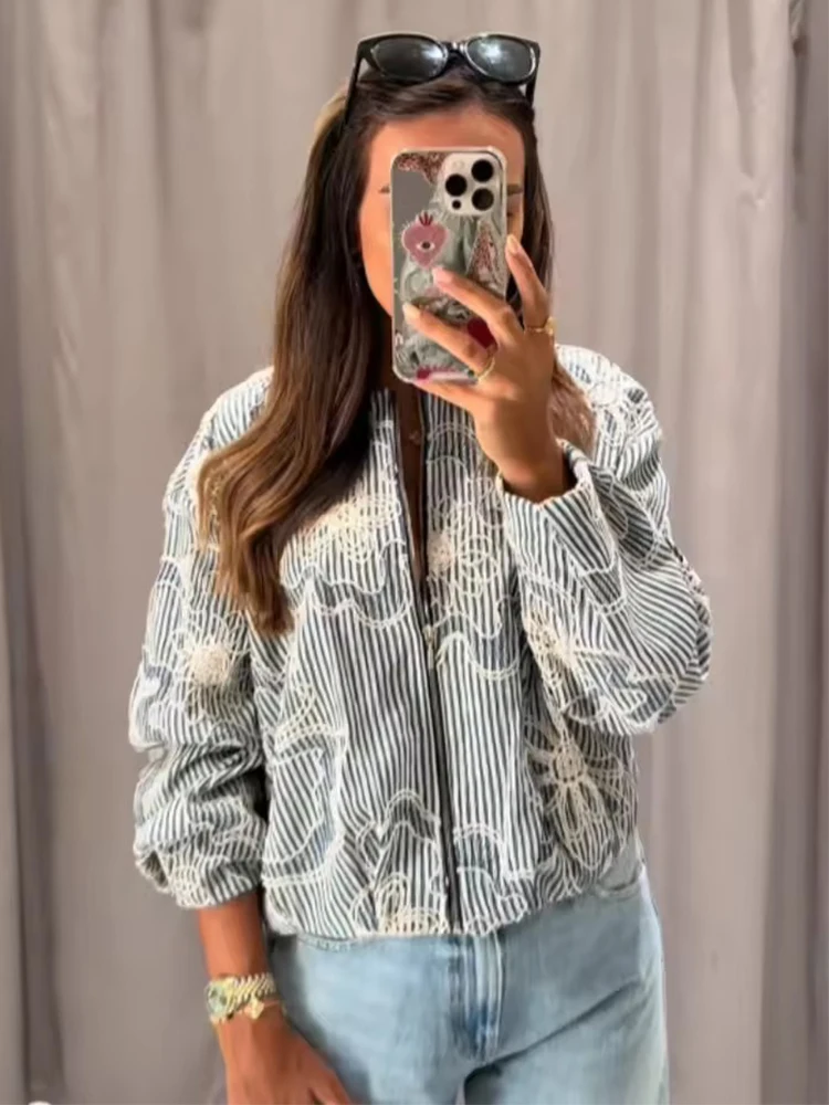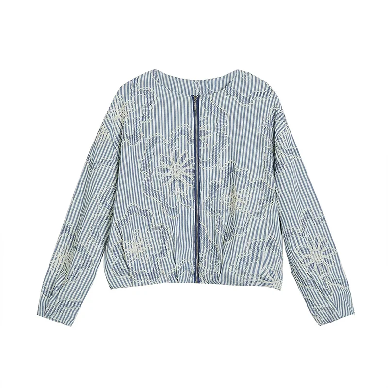 TRAF Women Bomber Jacket 2025 Women’s Fashion Flower Short Coat Long Sleeve Zipper Jackets Streetwear Casual New Outerwears