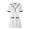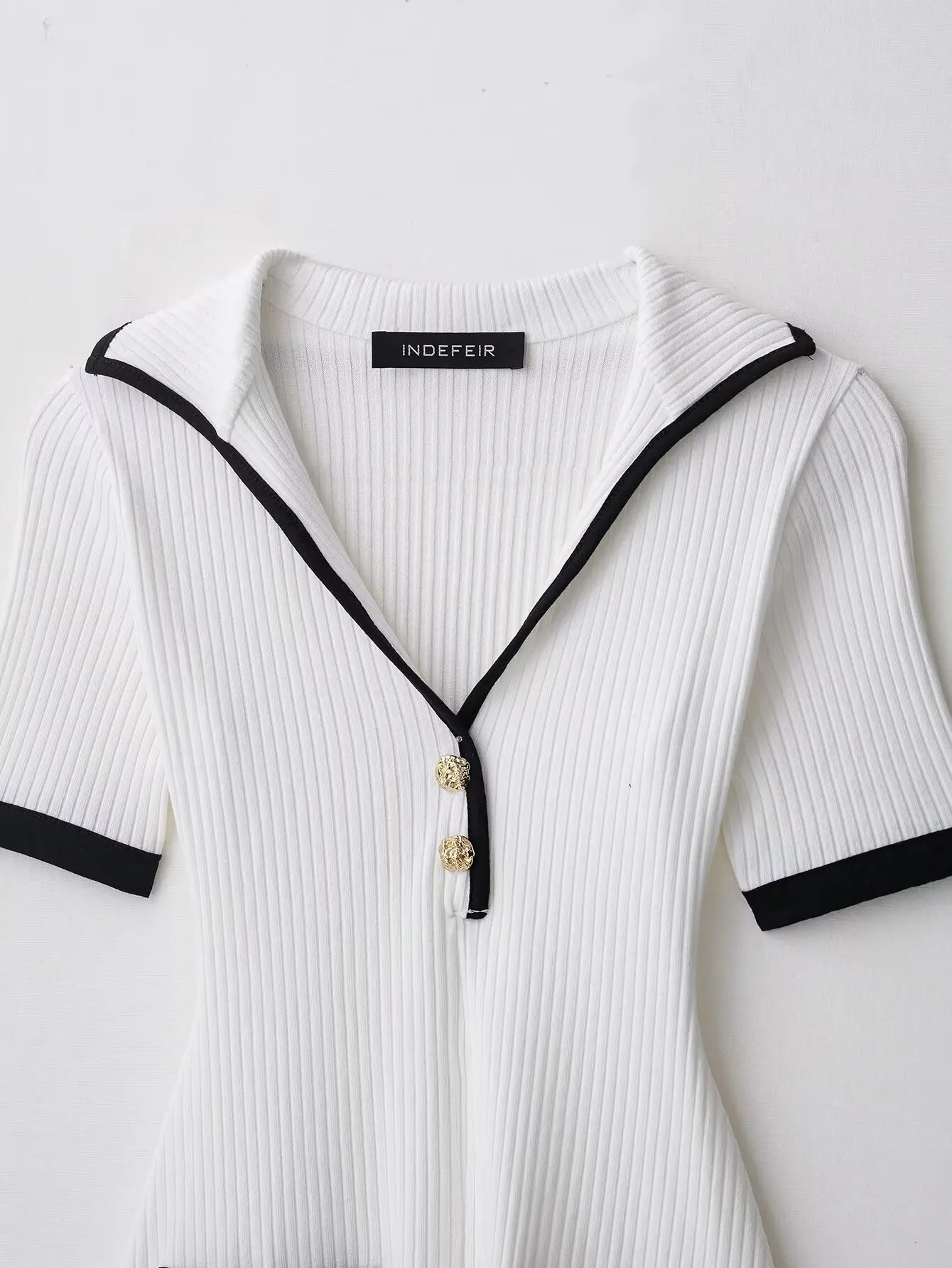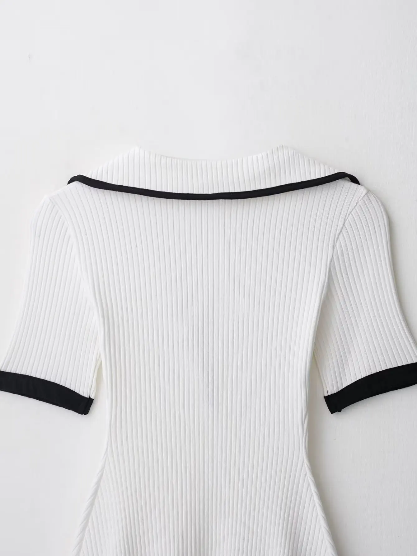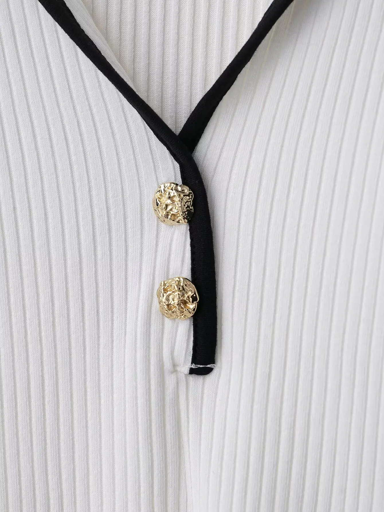 TRAF women’s slim fit V-neck autumn new style 2025 short skirt cinched waist metal button ribbed dress college style