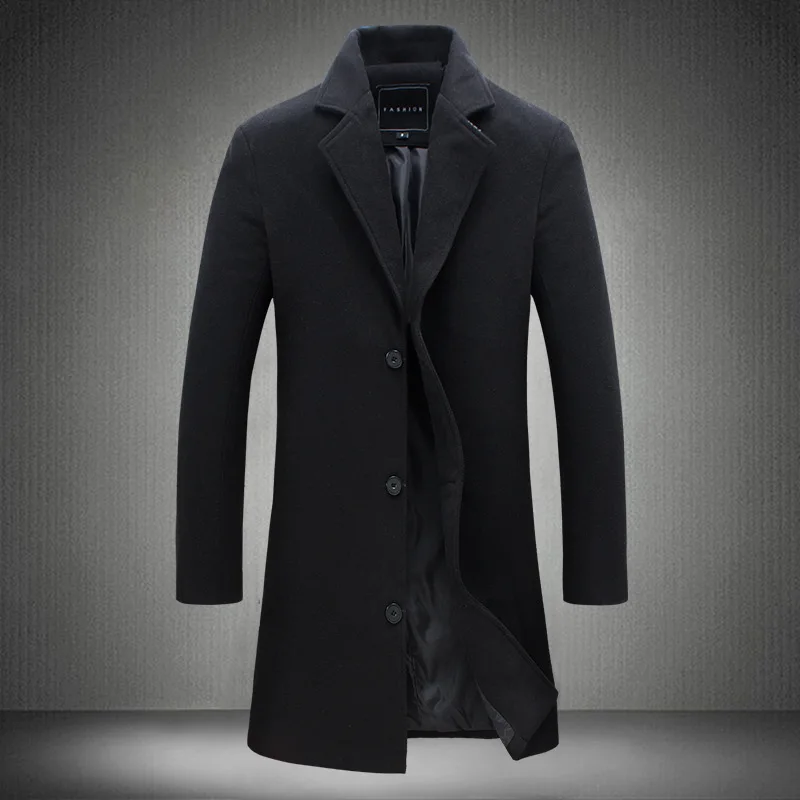Trench Men Mid Length Coats Turn Down Collar Full Sleeve Single Breasted Jackets Casual Regular Open Stitch Autumn Winter