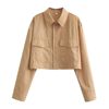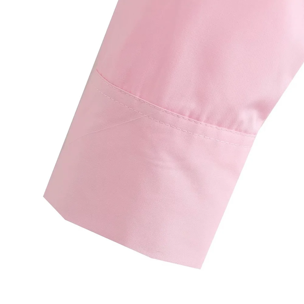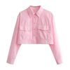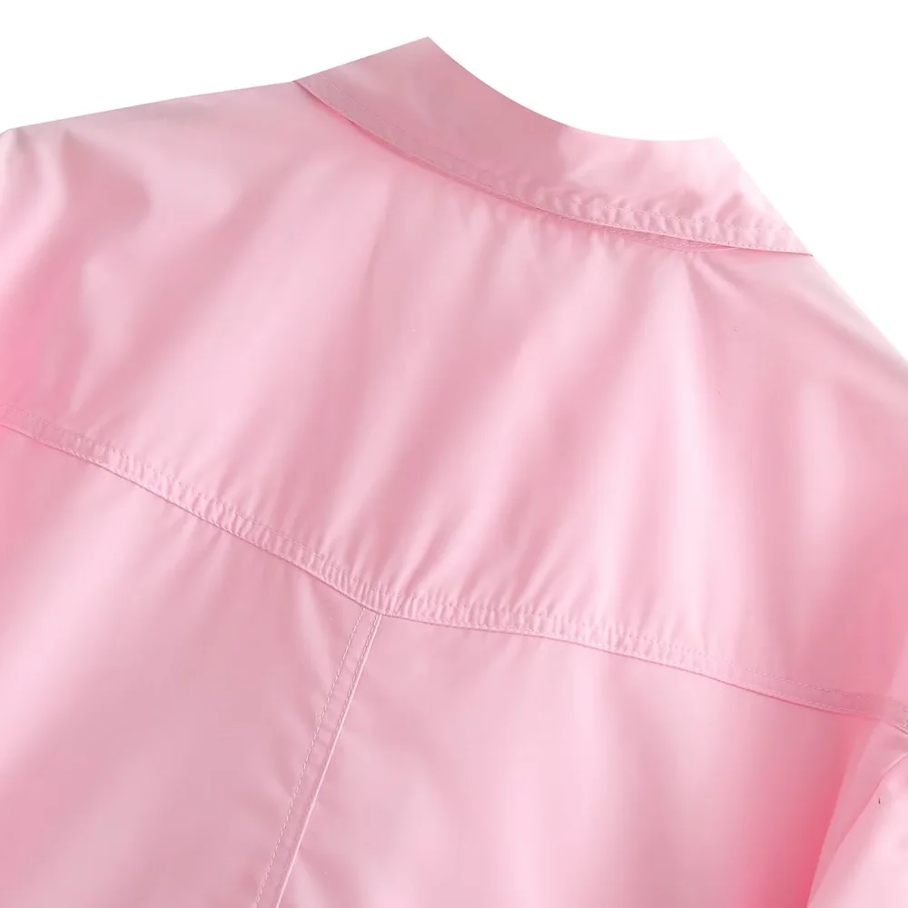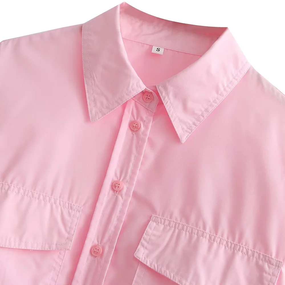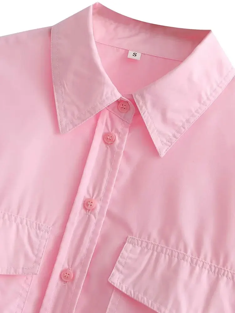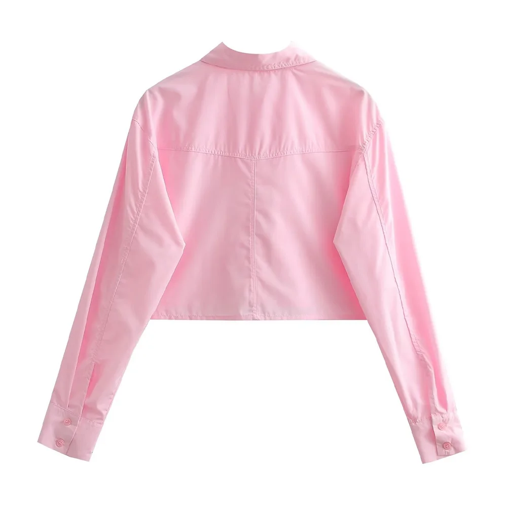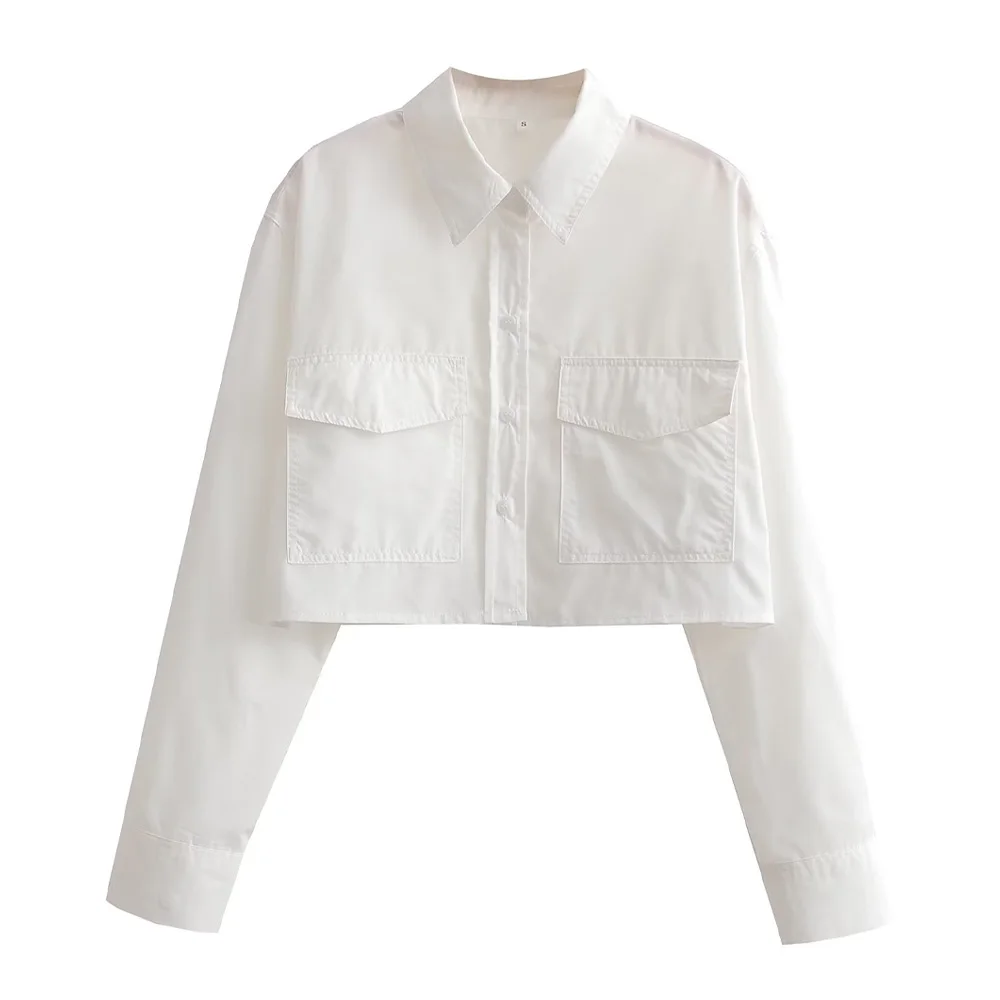 TRZA Women Fashion With Pockets Loose Cropped Poplin Shirts Vintage Long Sleeve Button-up Female Blouses Blusas Chic Tops