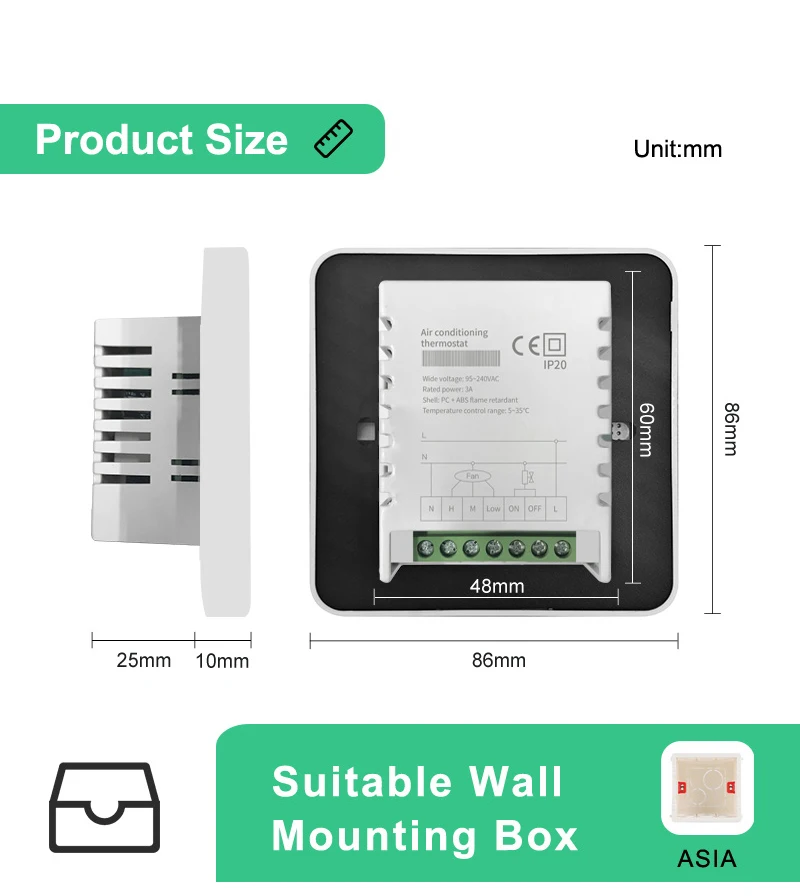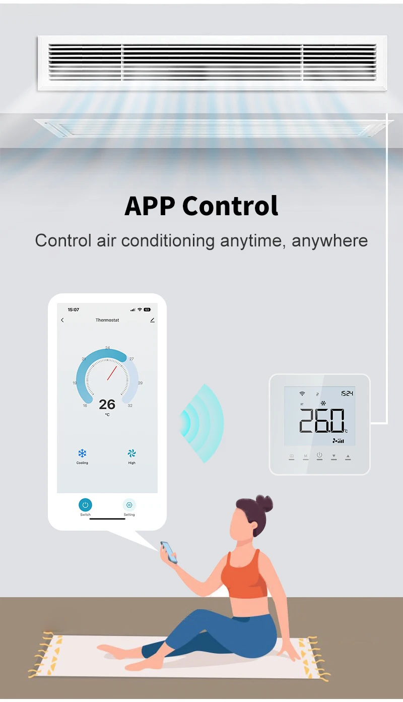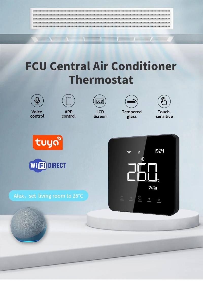 Tuya Air Conditioner For Google Home Alexa DuerOS WIFI Smart Thermostat Central Room Temperature Adjustable Digital