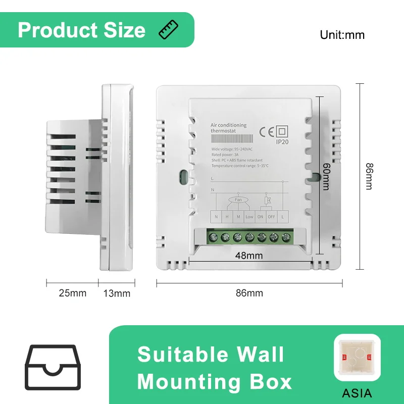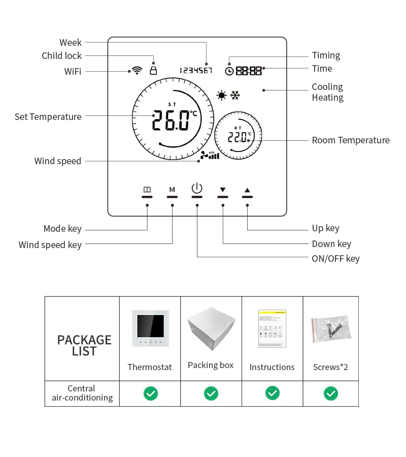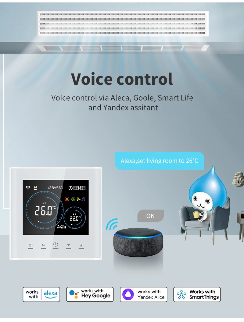 Tuya Air Conditioner Smart Thermostat For Google Home /Alexa WIFI Central Room Temperature ForAdjustable Digital