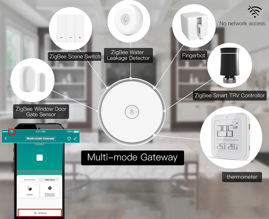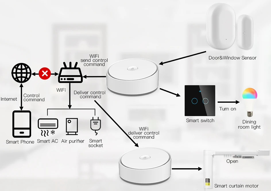 Locally executing scenario and automation is preferred, which enables smart scenarios and automation to be executed in case of no network access;Add sub-devices without network access and multiple sub-devices accessing the network at the same time.