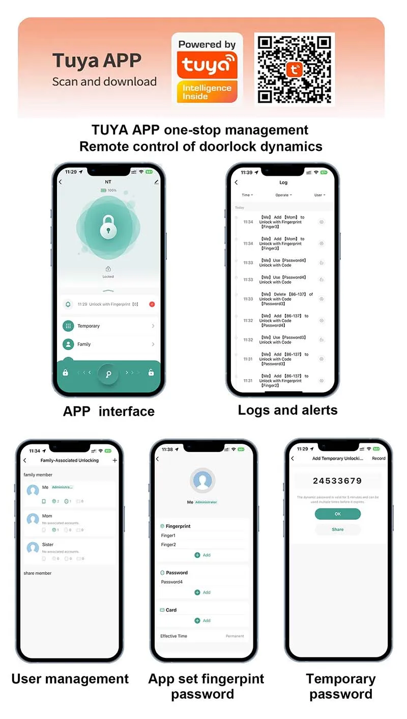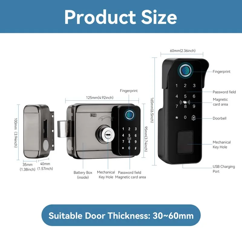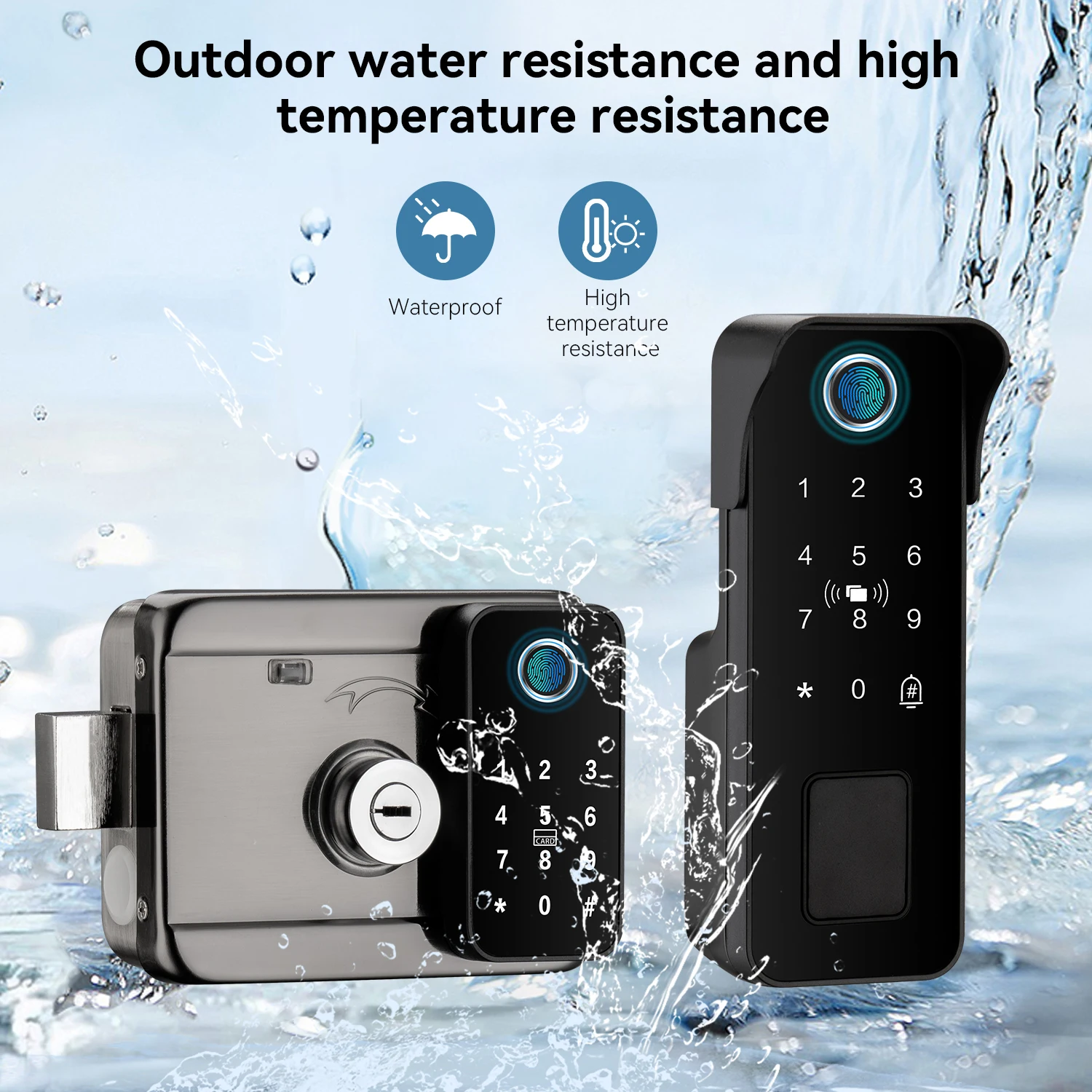 Tuya Waterproof Smart Door Lock Fingerprint Outdoor Garden Remote Control APP Card Digital Code Electronic Double Rim Lock