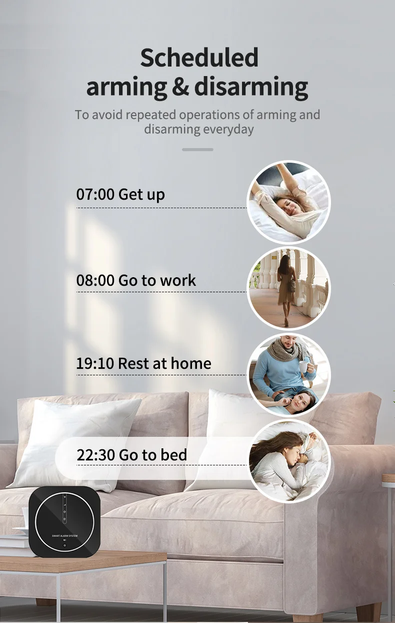 4. Remotely monitoring alarm: When accident invasion,the phone remotely grasp the situation, high decibel live alarm through the host timely dial,send SMS notification, APP message push.