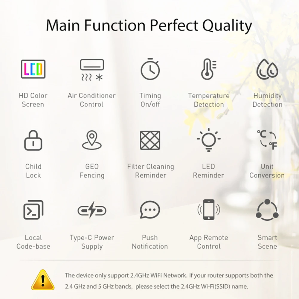 Tuya WiFi Thermostat Air Conditioner IR Temperature Humidity Infrared Controller USB Power LCD Touch Screen Google Home Alexa