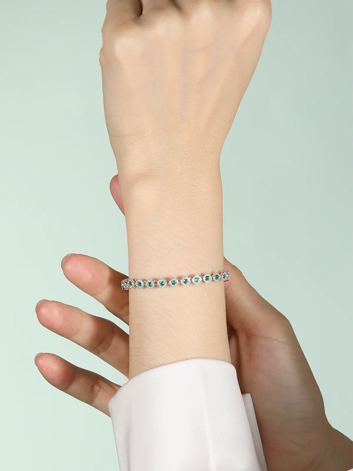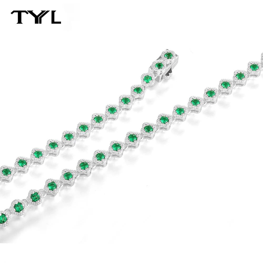 TYYL 2mm Lab Grown Emerald Tennis Bracelet for Women Men 925 Silver 4 Leaf Clover Bezel Gemstone Bracelets Ladies Jewelry Bangle
