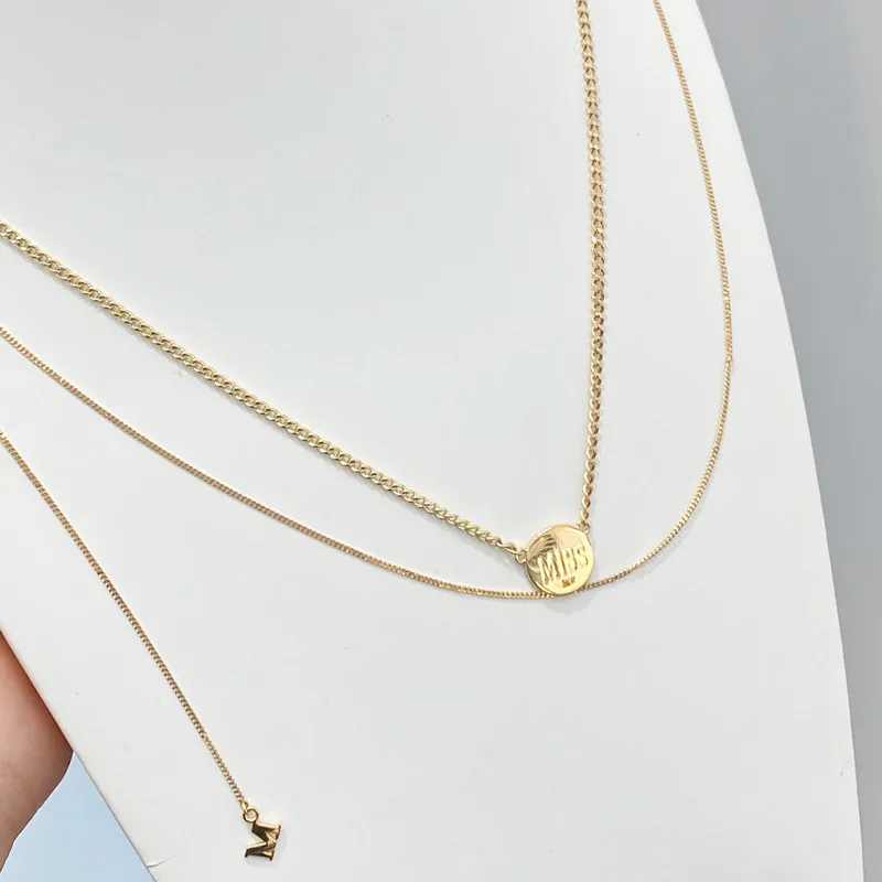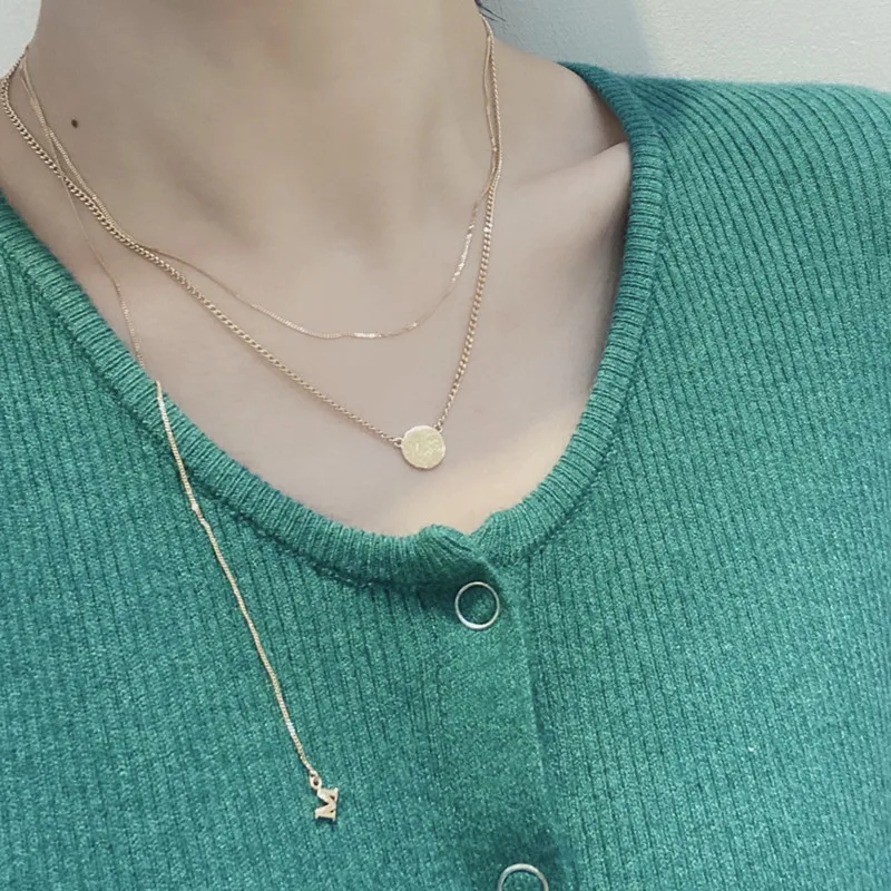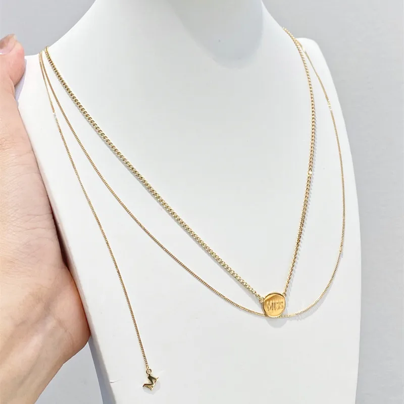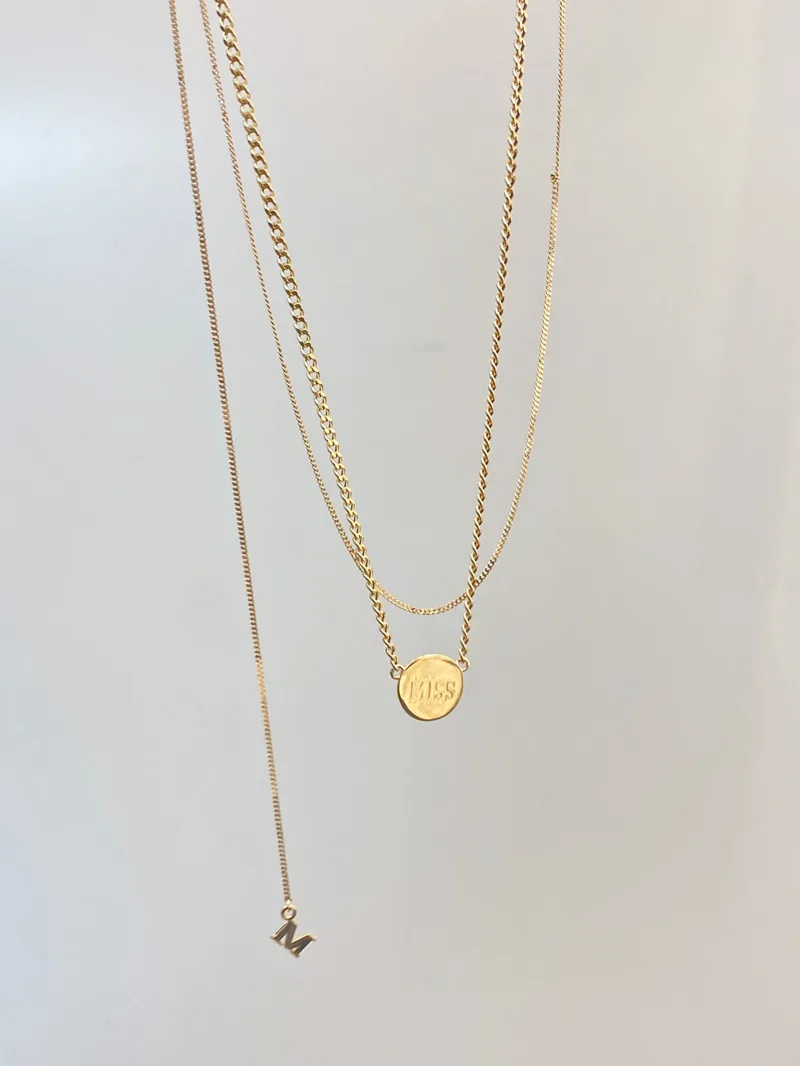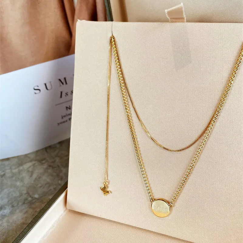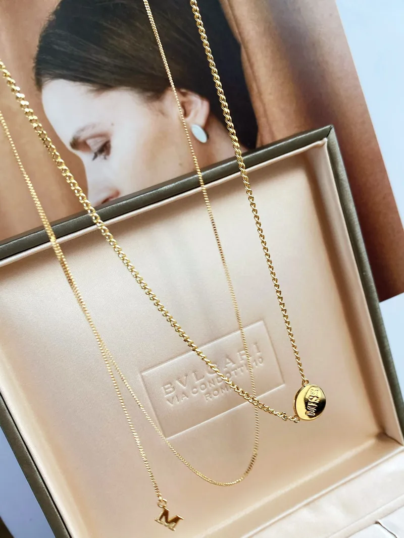 UBESTNICE Ins Double Layered Necklace Real 18K Solid Yellow Gold AU750 Miss Medal Pendant Chain Necklaces For Women Fine Jewelry