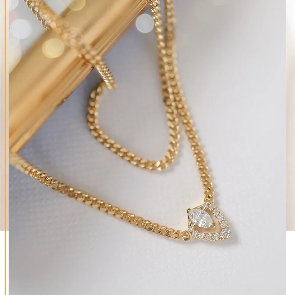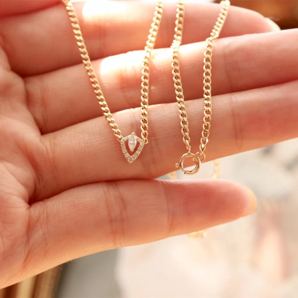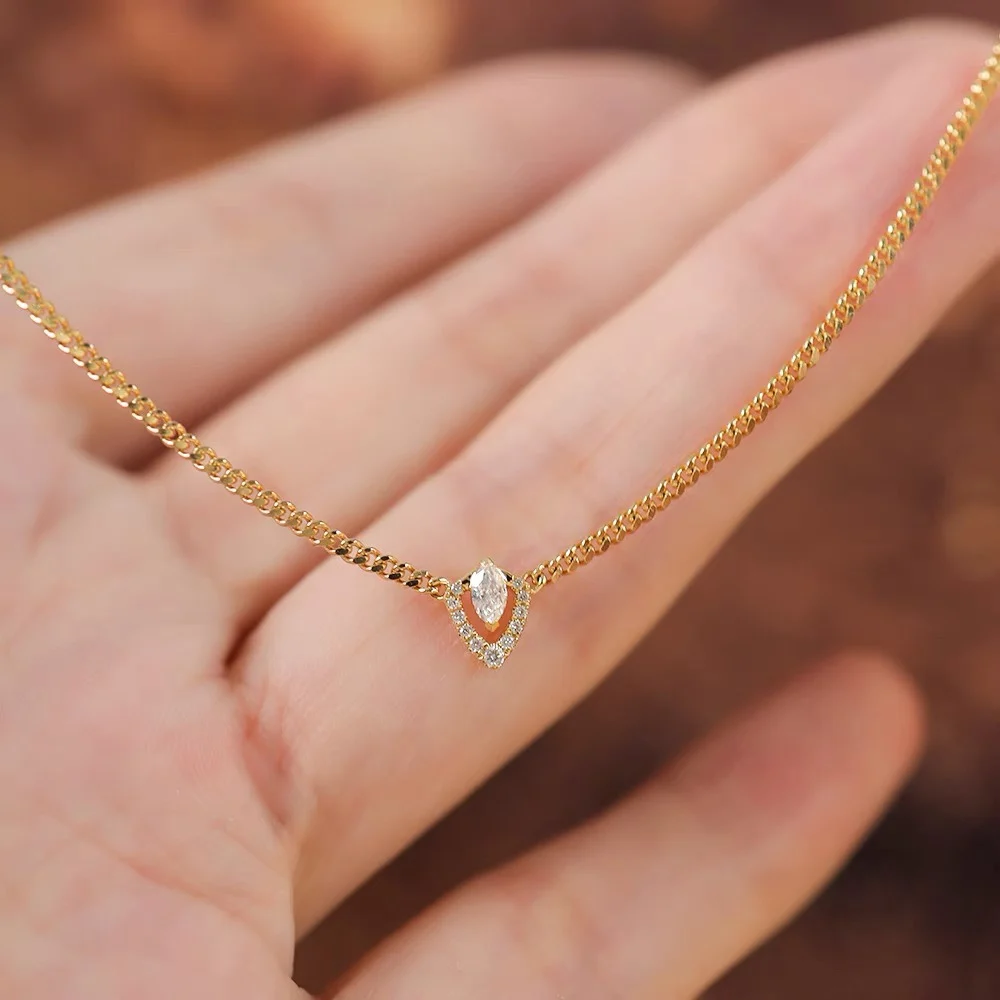 UBESTNICE Ins Popular Real 18K Yellow Gold Jewelry AU750 Marquise Natural Diamonds Shield Pendants Necklace for Women Party Gift