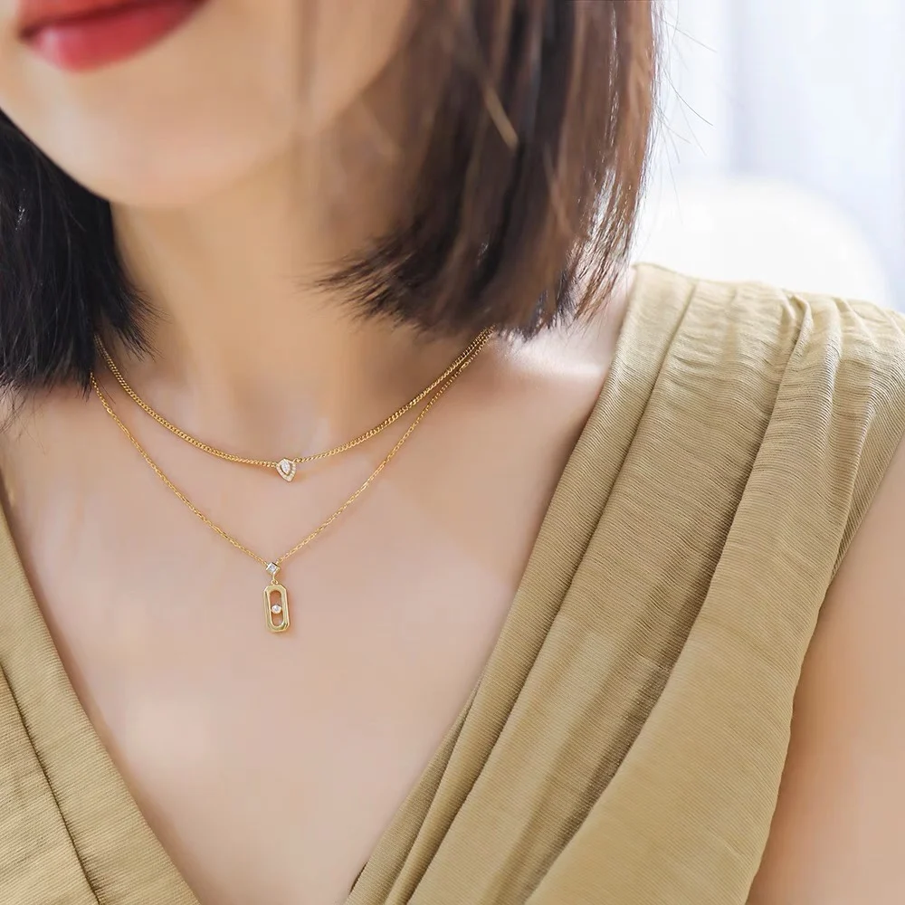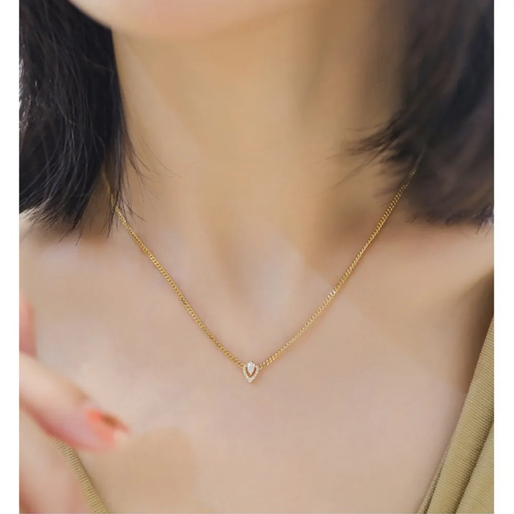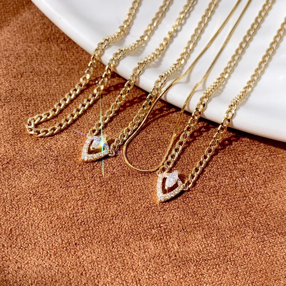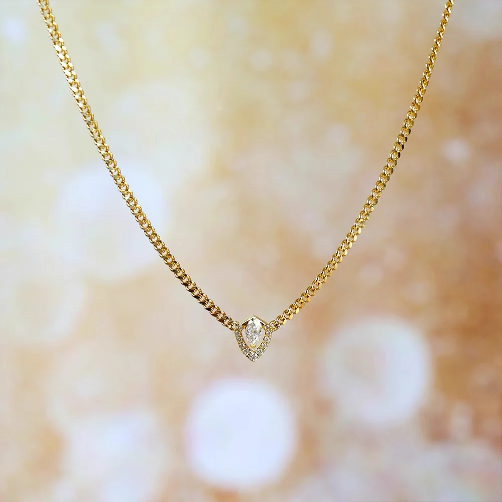 UBESTNICE Ins Popular Real 18K Yellow Gold Jewelry AU750 Marquise Natural Diamonds Shield Pendants Necklace for Women Party Gift