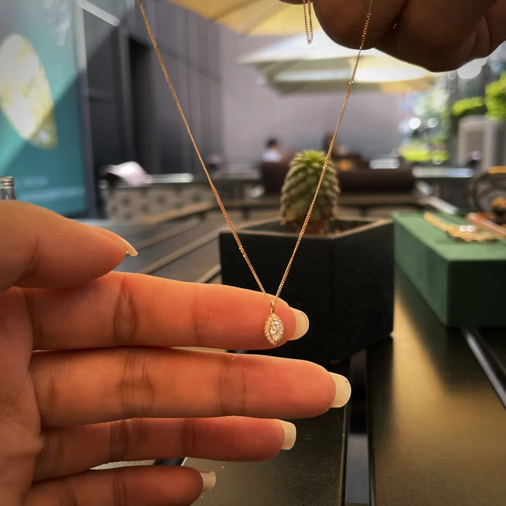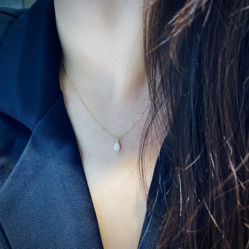 UBESTNICE Real 18K Solid Yellow Gold Jewelry AU750 Natural Diamonds Water Drop Marquise Shape Pendant Necklaces for Women Gift