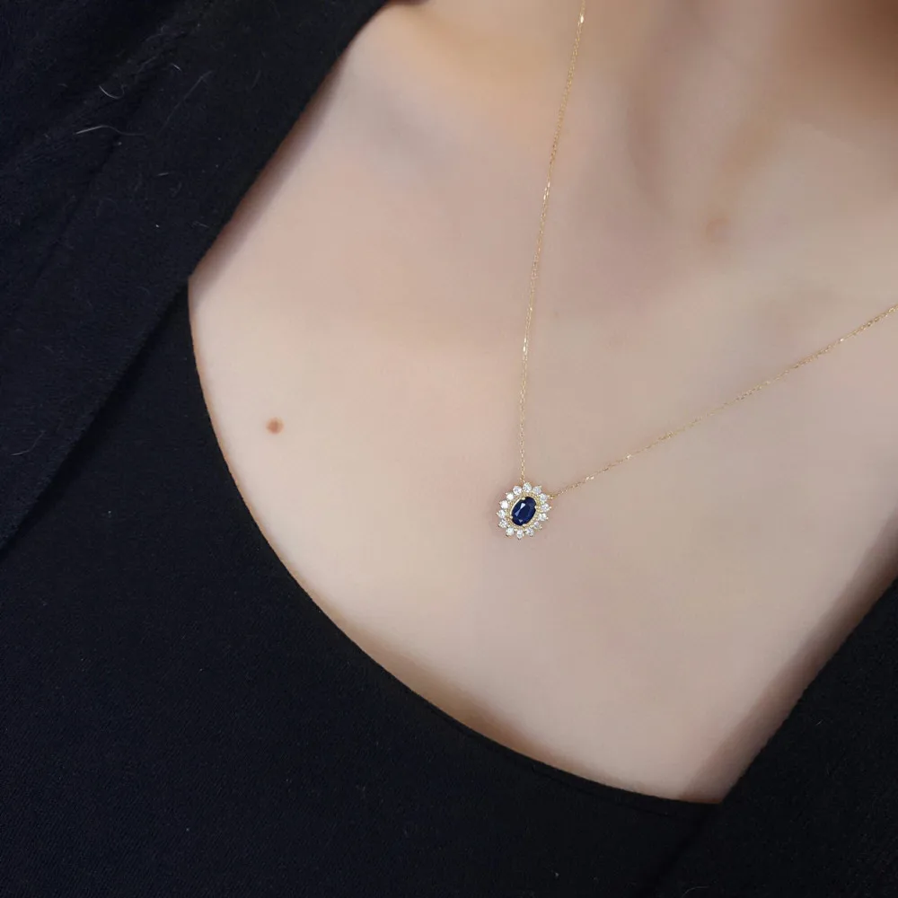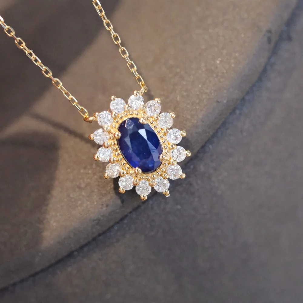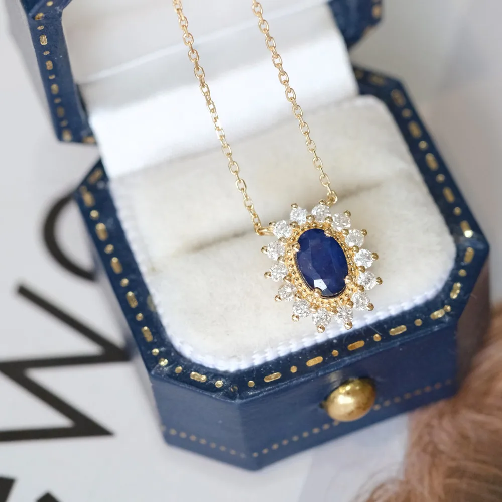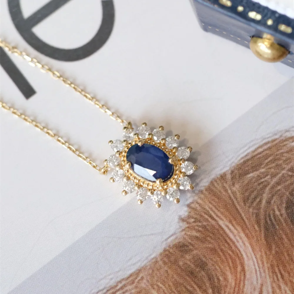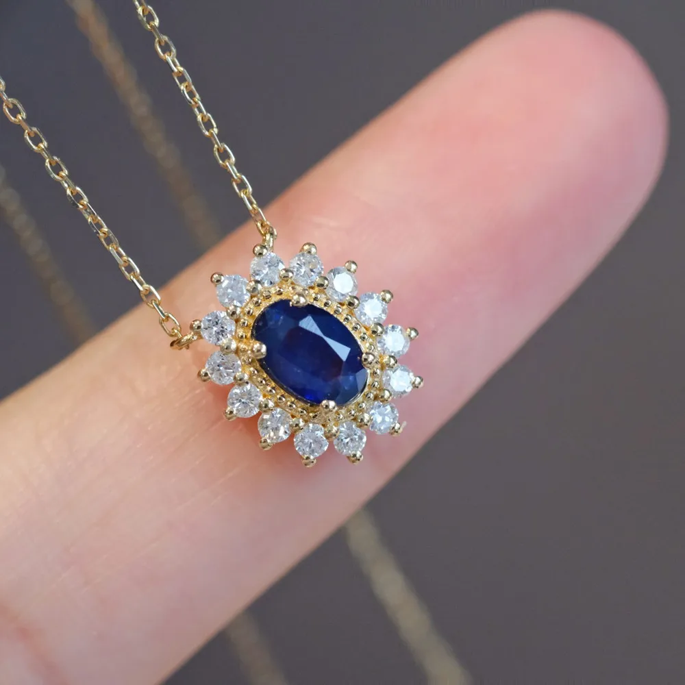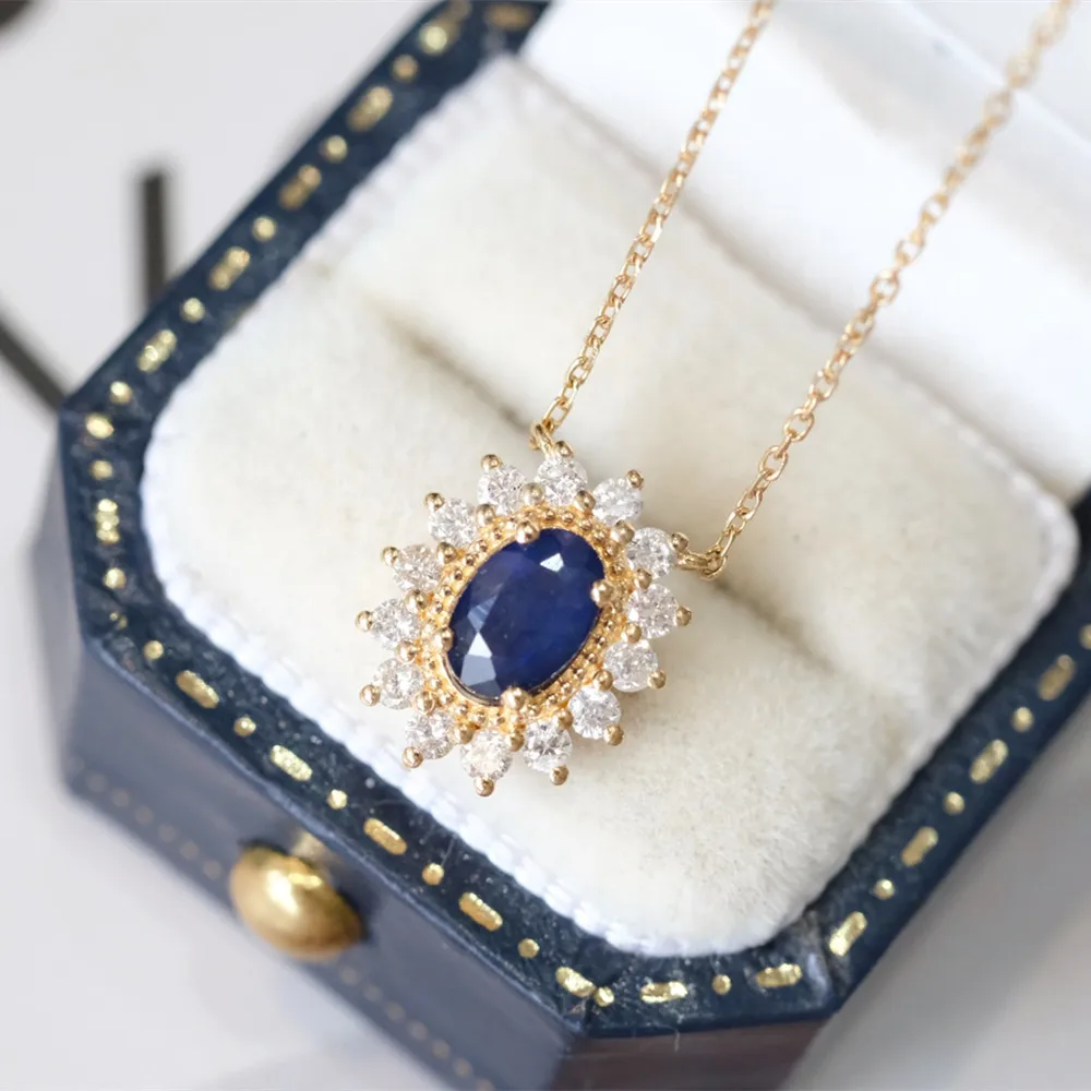 UBESTNICE Real 18K Solid Yellow Gold Jewelry AU750 Natural Diamonds Royal Blue Gemstone Sapphire 0.80carats Pendant Necklaces