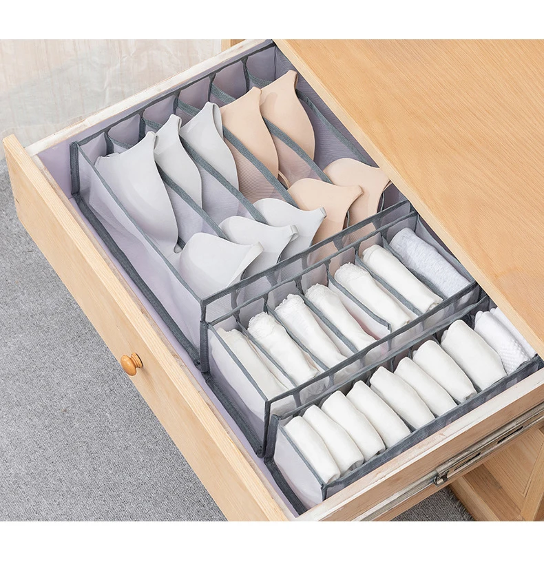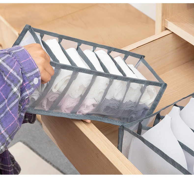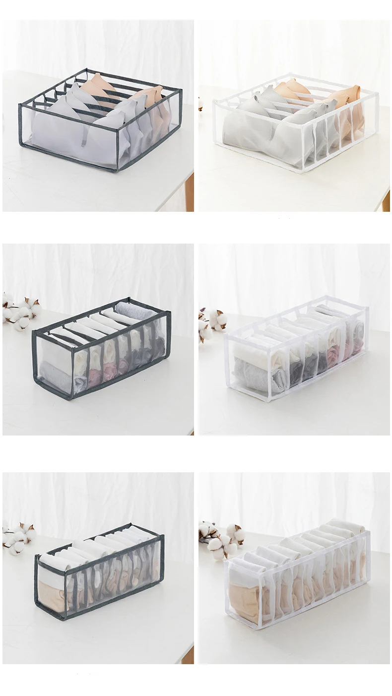 6/7/11grids Foldable Underwear Underwear Socks Organizer With Dividers Clothes Storage Box Breathable Mesh Bag For Wardrobe