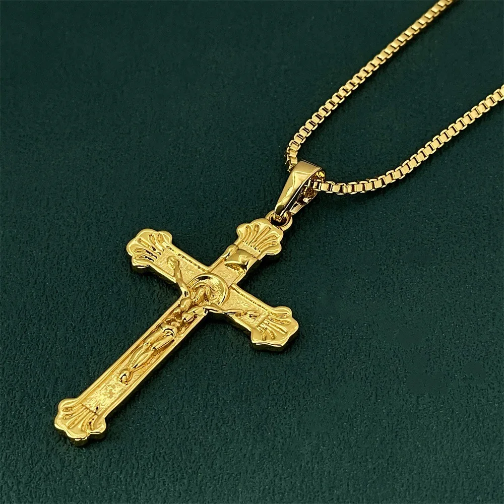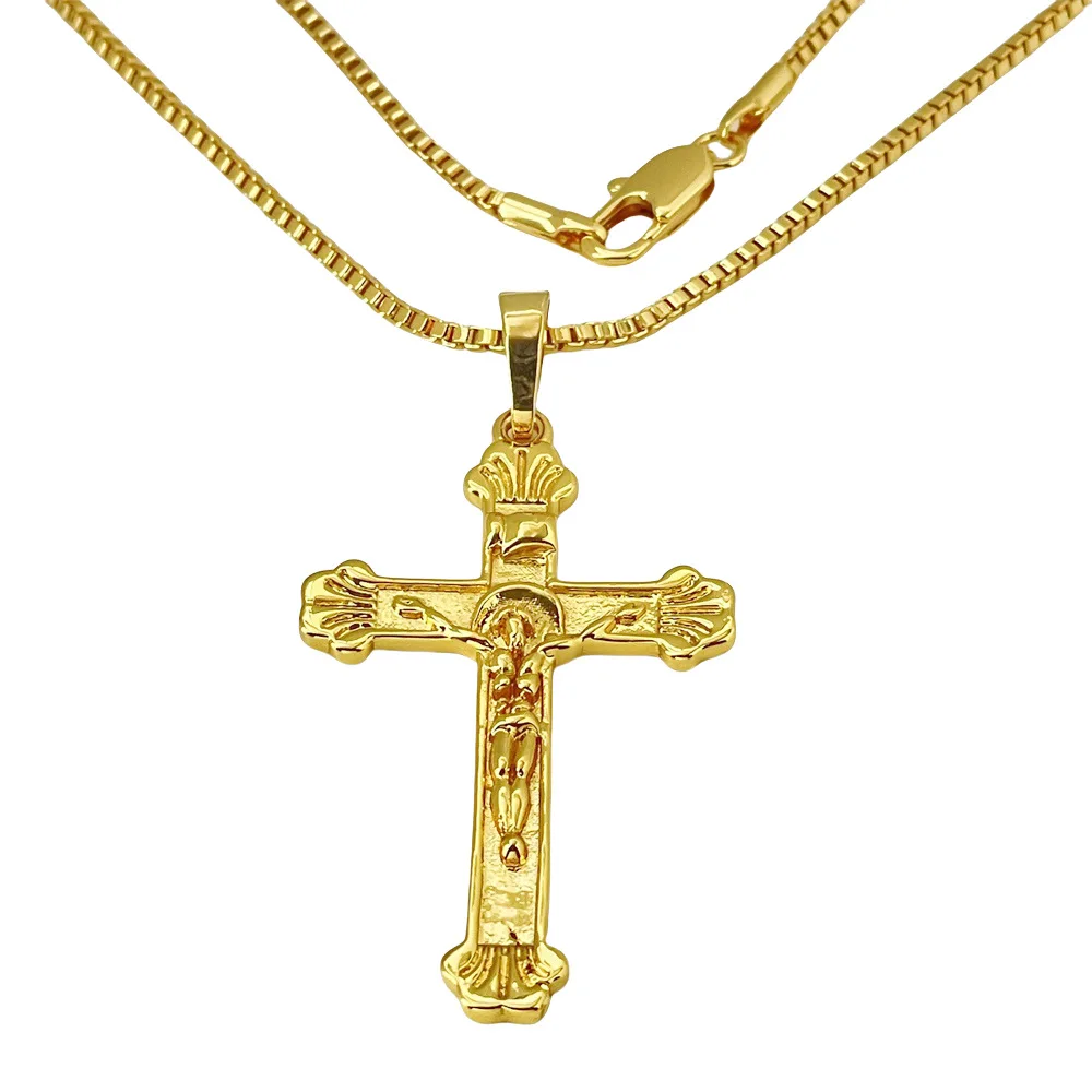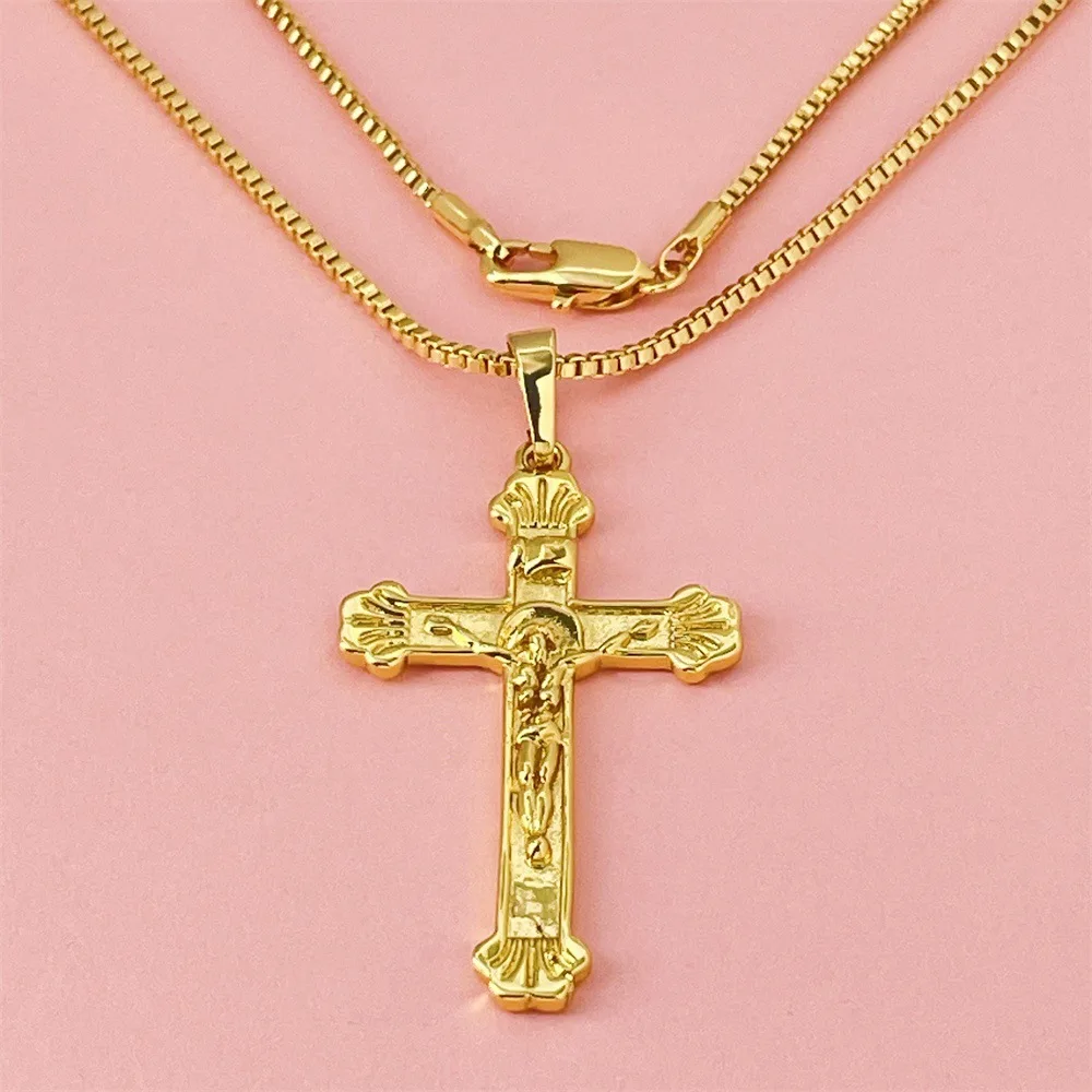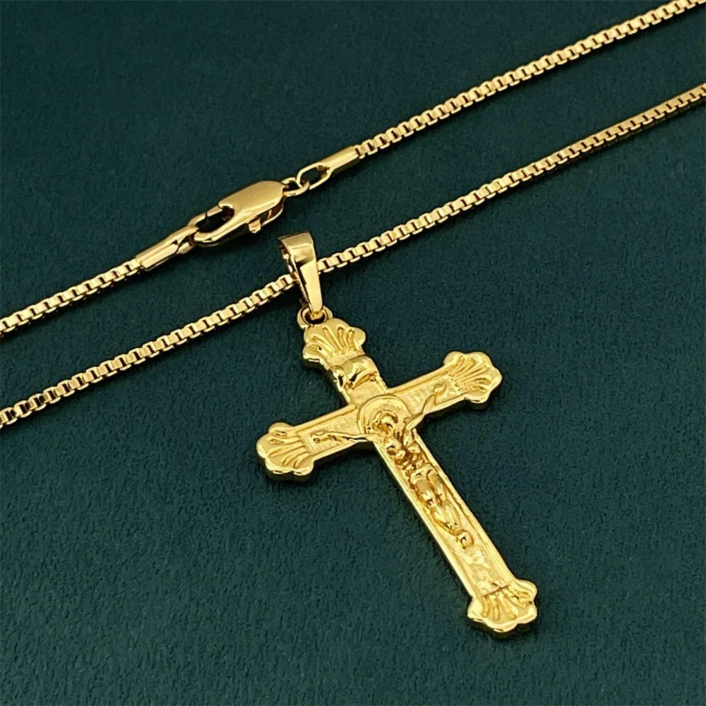 Unisex 24K Gold (AU999) Cross Necklace Gold inlaid cross core, hammered texture with adjustable gold chain