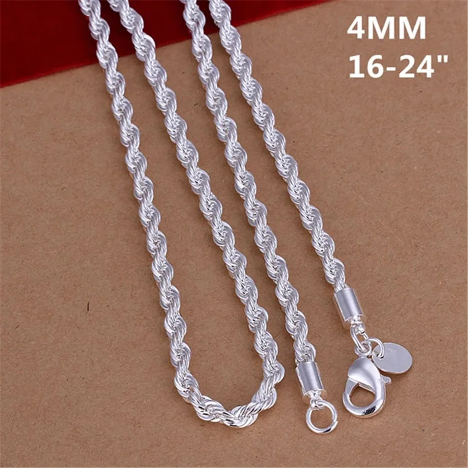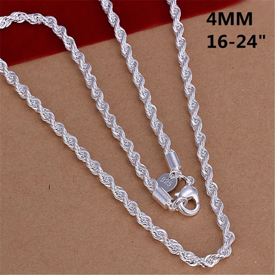 URMYLADY 16-24inch for women men Beautiful fashion 925 Silver charm 4MM Rope Chain Necklace fit pendant high quality jewelry