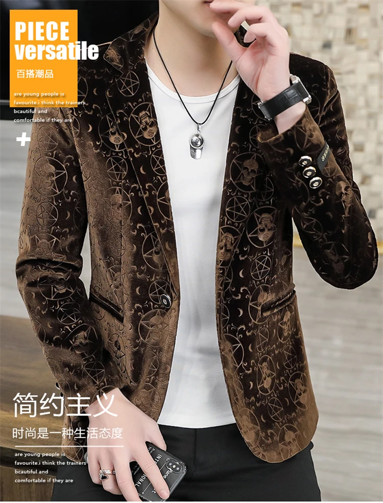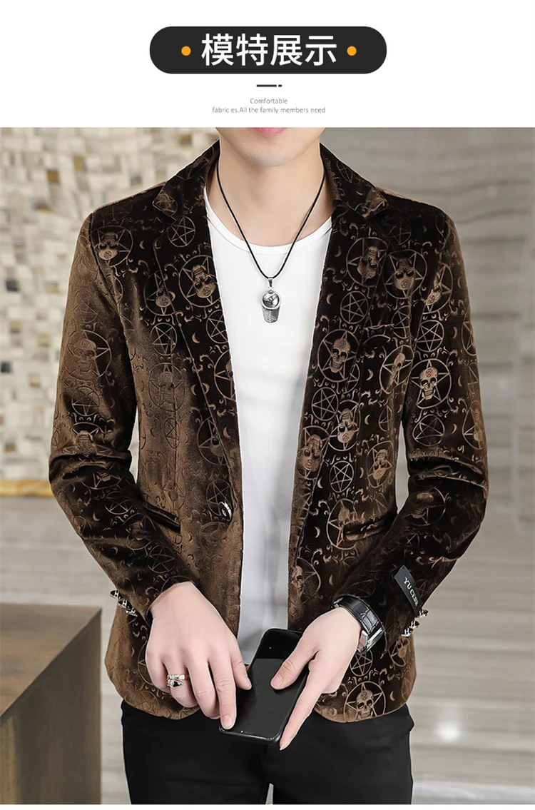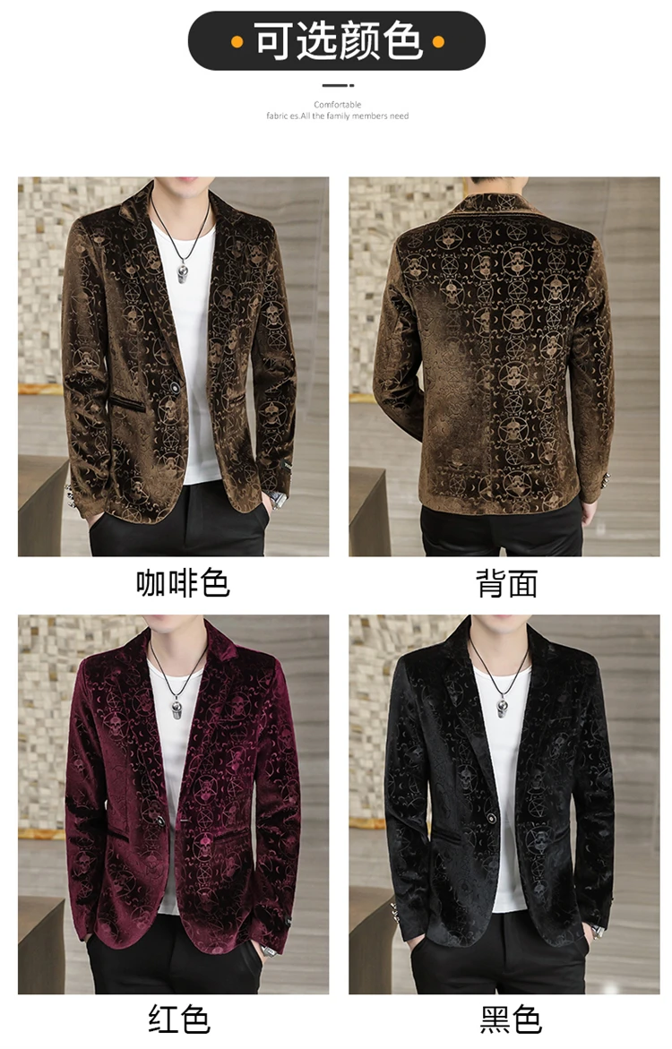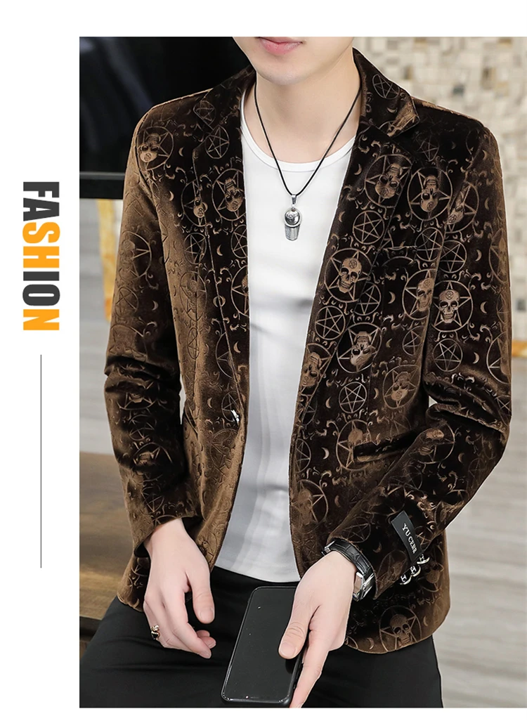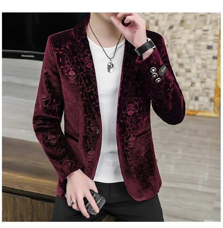 Velvet Jacquard Luxury Blazers For Men Skulls Fashion Slim Fit Spring Quality Soft Comfortable Suits Coat Casual Terno Masculino
