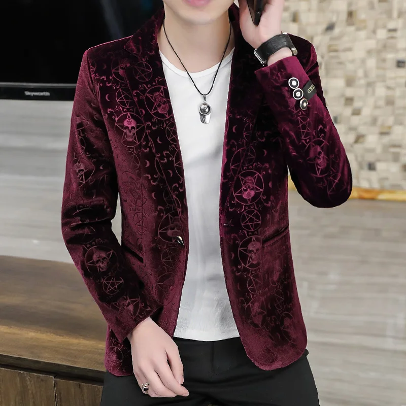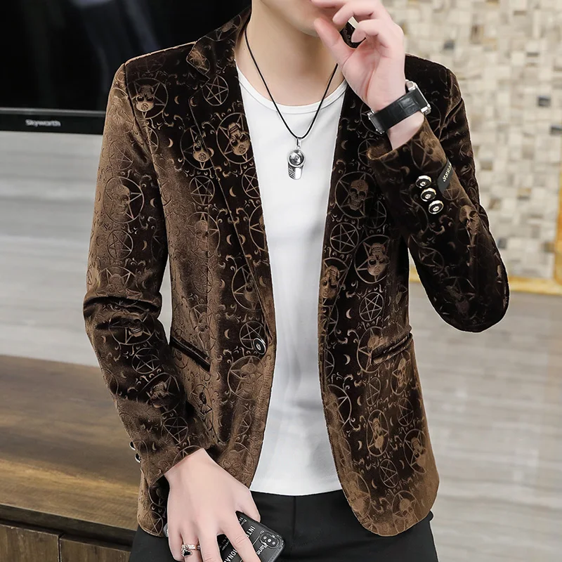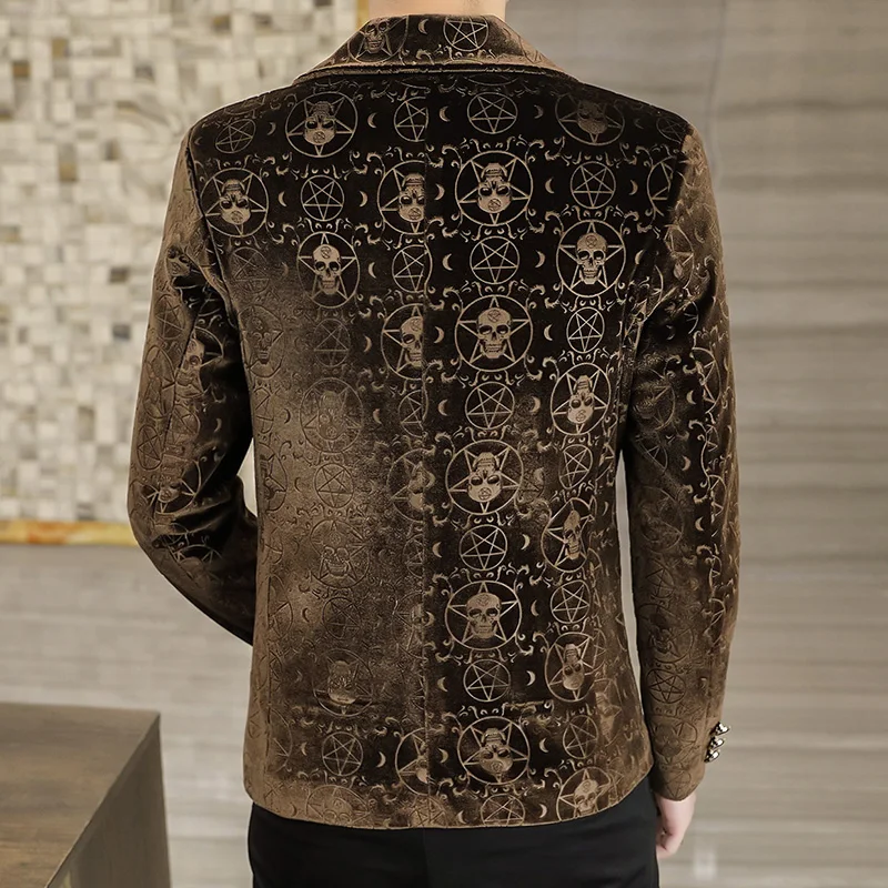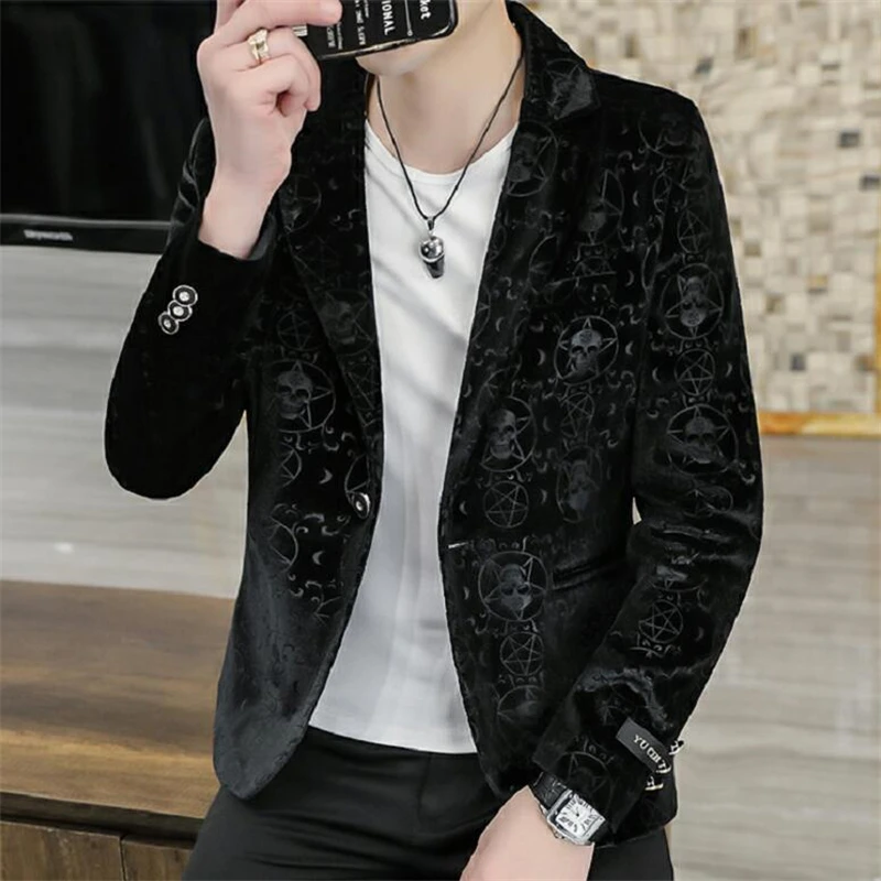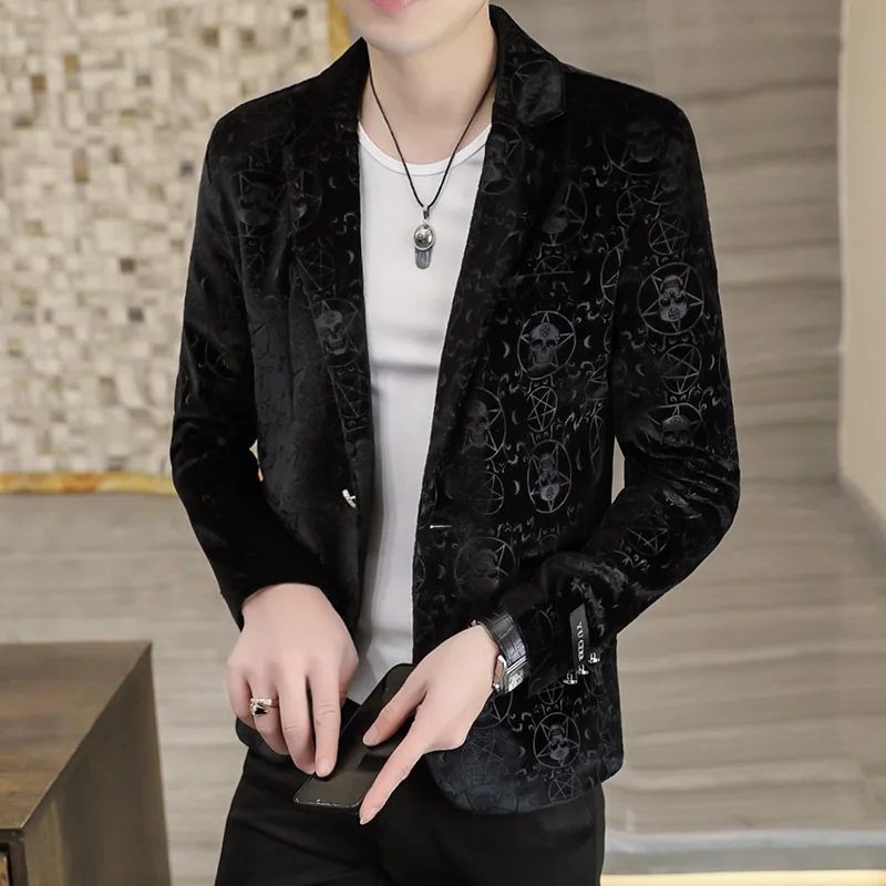 Velvet Jacquard Luxury Blazers For Men Skulls Fashion Slim Fit Spring Quality Soft Comfortable Suits Coat Casual Terno Masculino