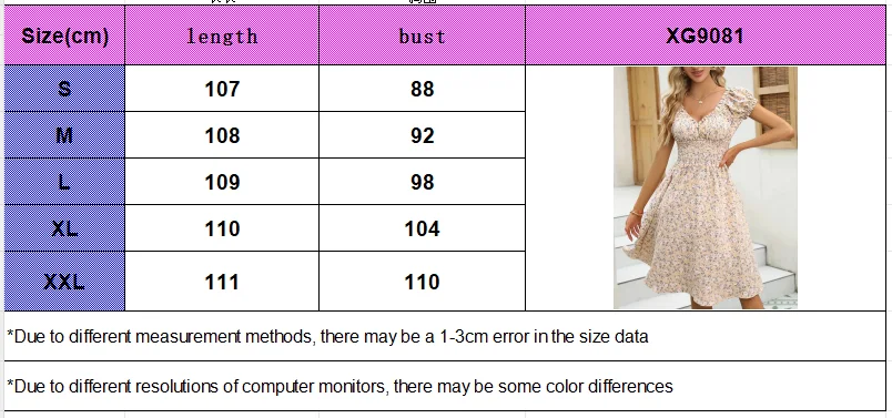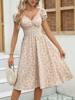 Vintage floral dress with fluffy cuffs and pleated waist cinching, suitable for women’s summer beach wear and summer parties