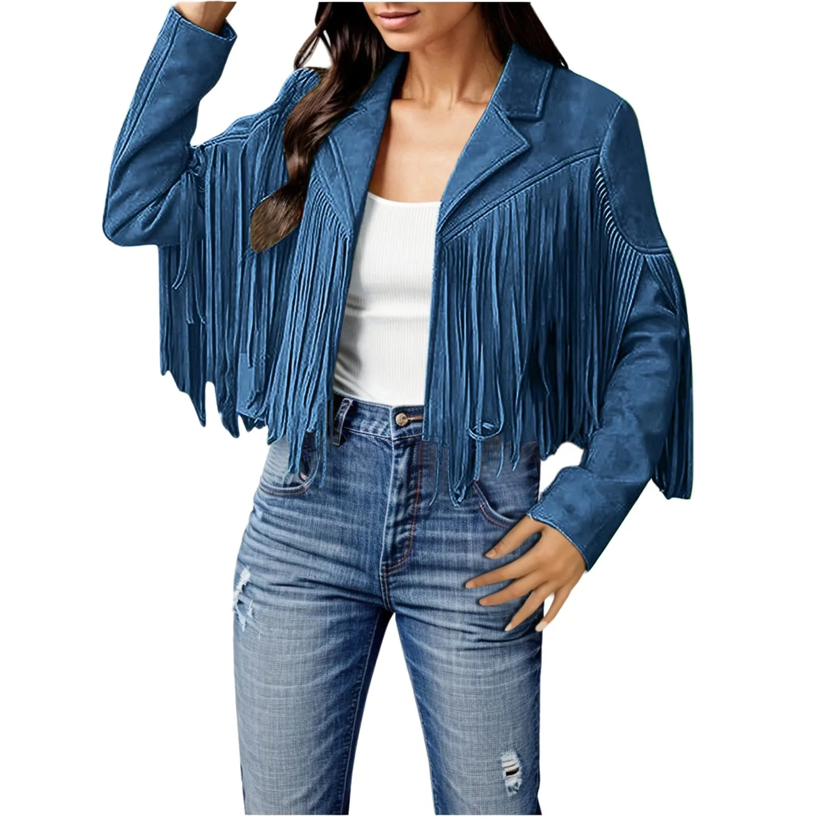 Women Fashion Fringe Faux Suede Leather Jackets Fashion Tassel Motorcycle Cropped Coats