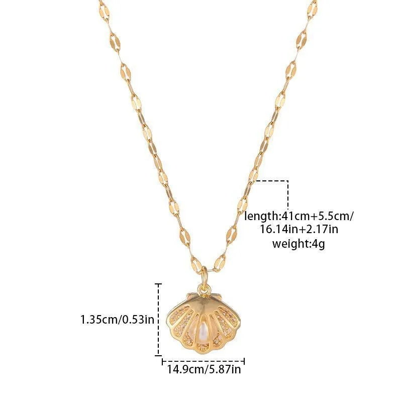 Vintage Gold Color Hollow Out Shells Pearl Pendant Necklace for Women New Trend Girls Clavicle Chain Paty Jewelry Birthday Gift