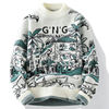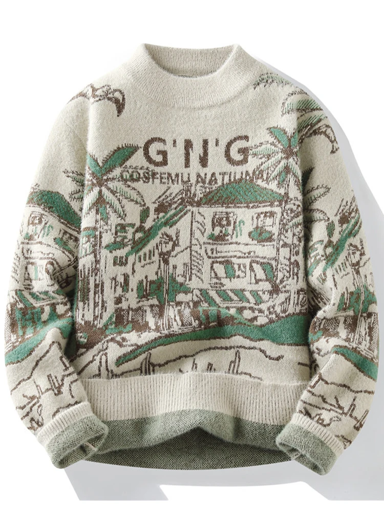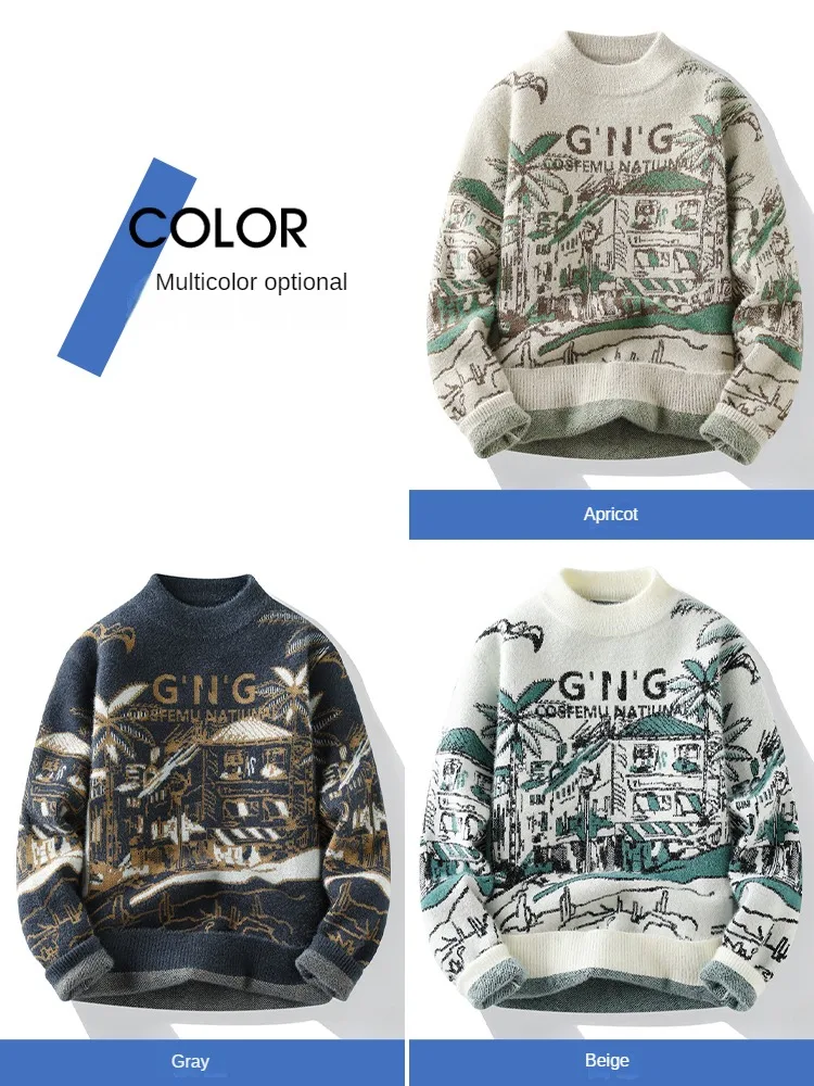 Vintage Knitted Sweater Men Casual Winter Knitwear Sweater Crewneck Jacquard Thick Warm Korean Pullover Youth Clothing Hipster