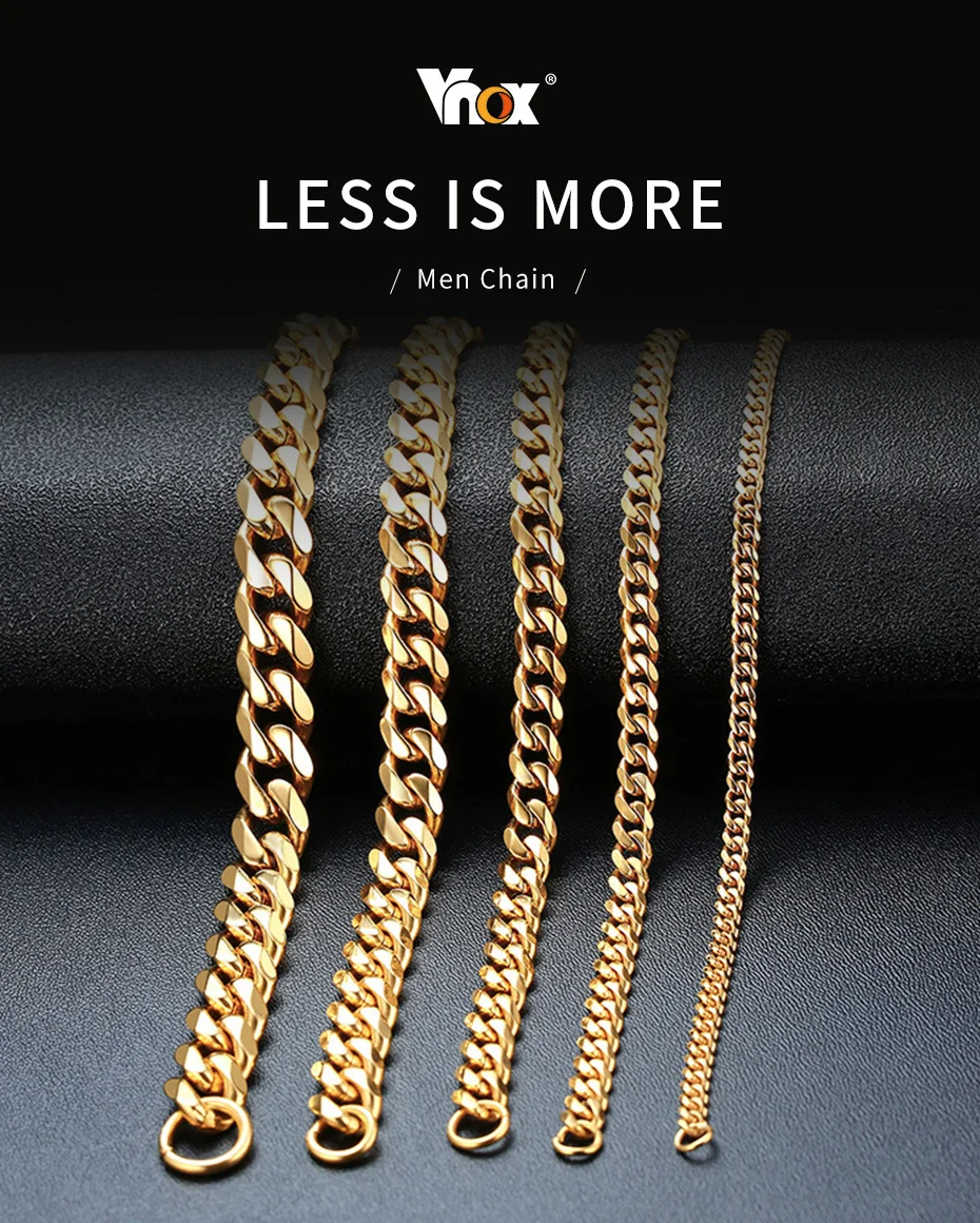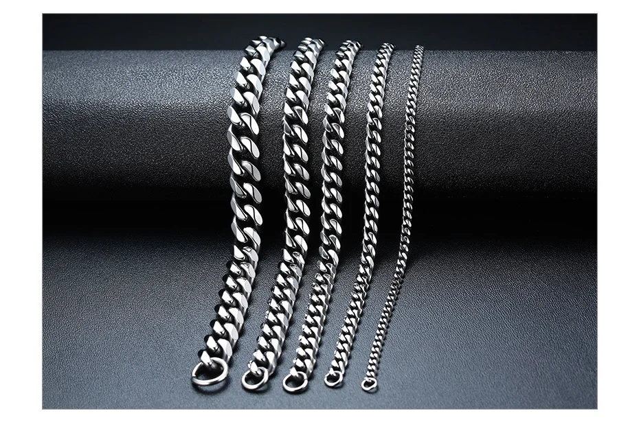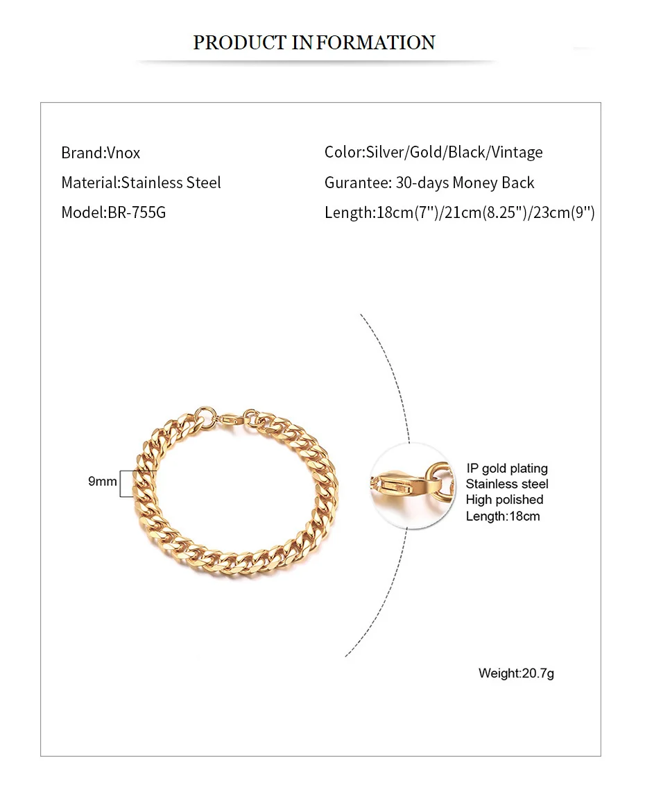 Vnox Basic 3/5/7/9/11mm Wide Curb Cuban Link Chain Bracelets for Men Women Jewelry Anti Allergy Stainless Steel Wristband Gifts