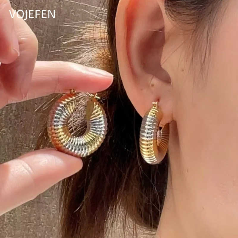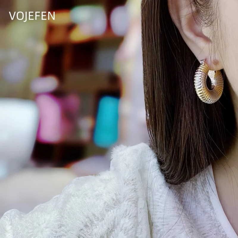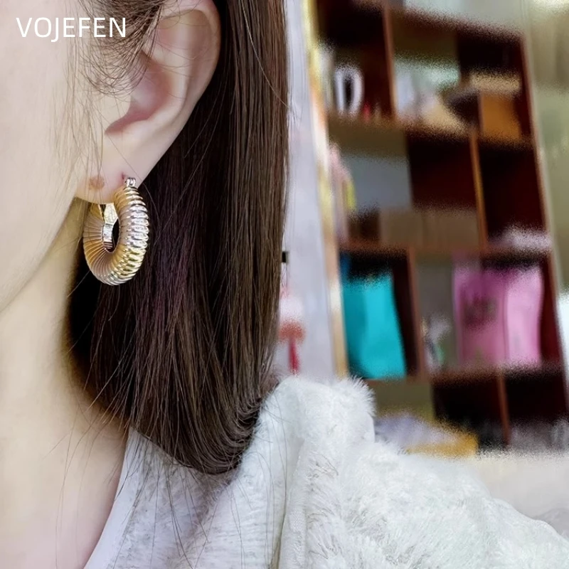 VOJEFEN 18K Gold Earrings Jewelry Original AU750 Real Yellow /White Gold Thread Hoops Jewelry Thickened Earring Luxury Jewel