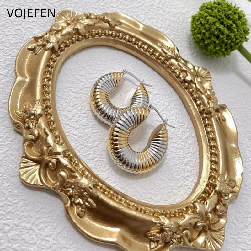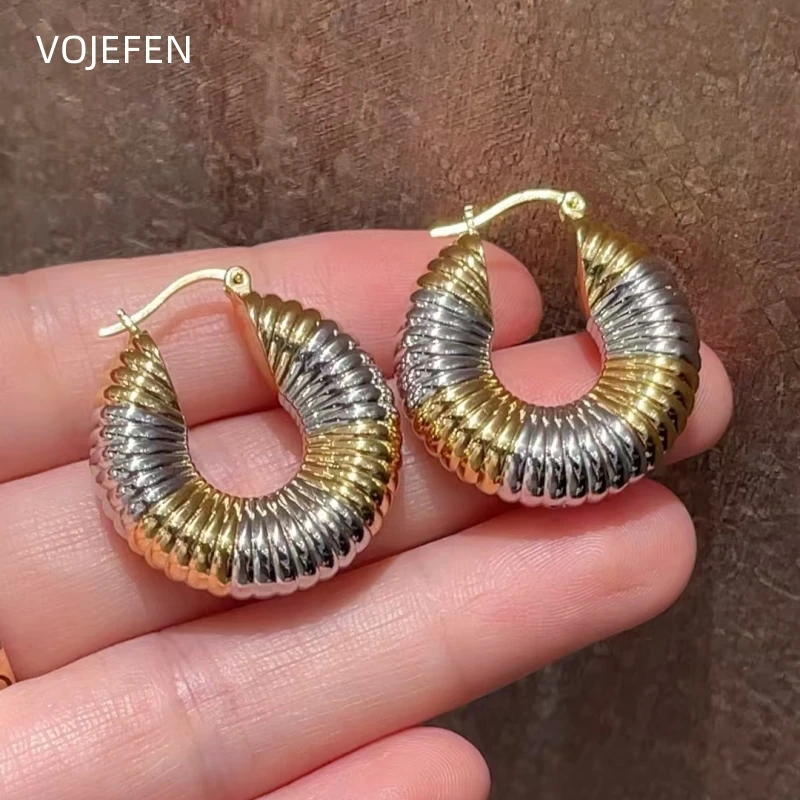 VOJEFEN, Real 18k Gold Earrings, High Polished Oval, Hoops Women, Large Twisted Golden Earring for Female,