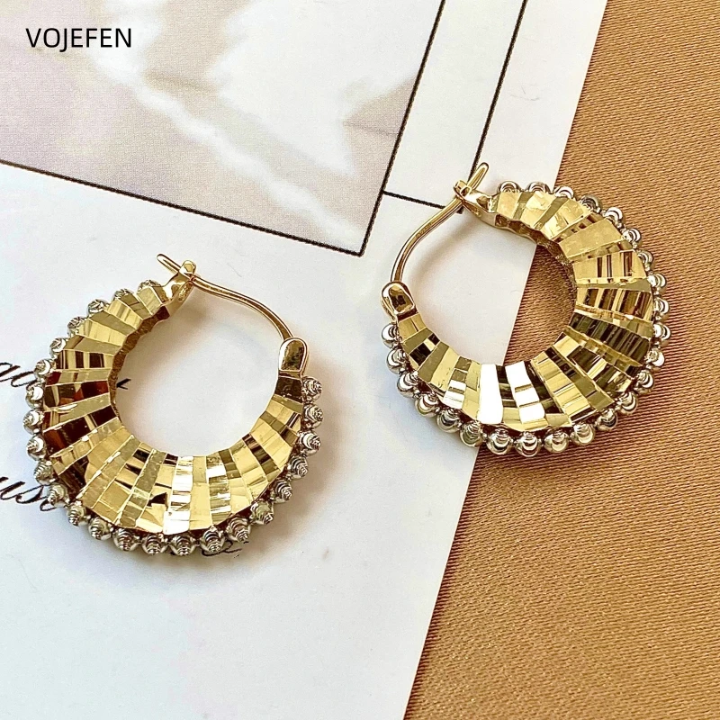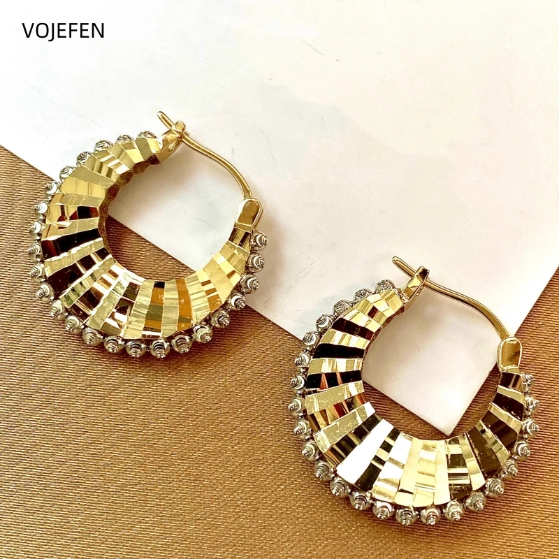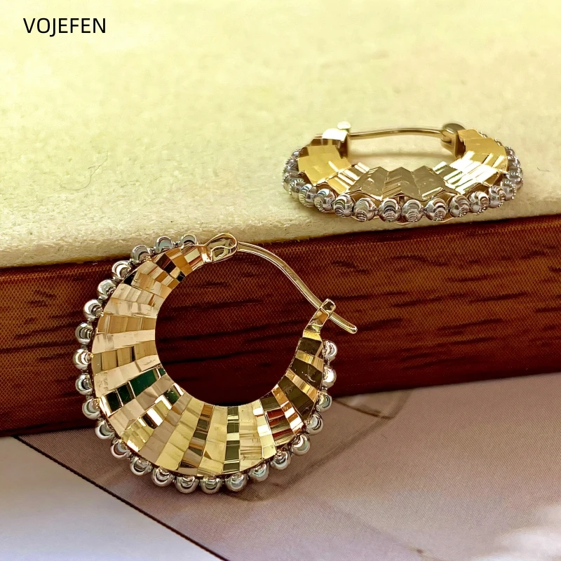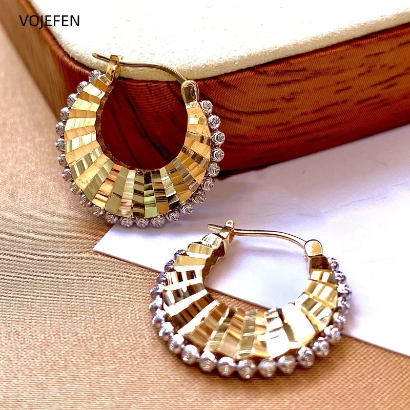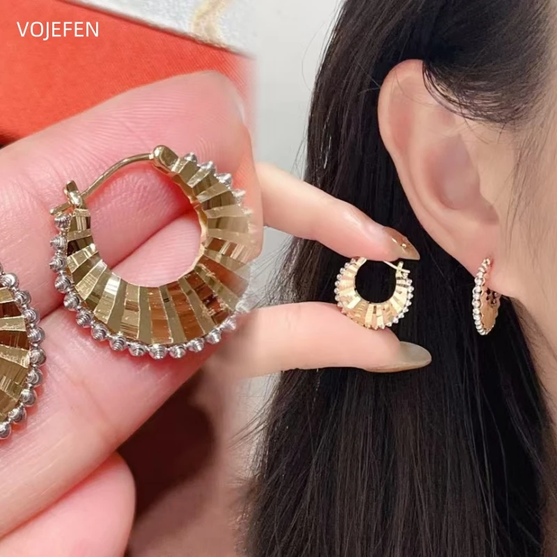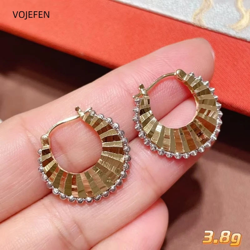 VOJEFEN 18K Gold Fan Hoops Stud Earrings Jewel Genuine AU750 Yellow/White Gold Italian Crafts Luxury Jewelry Woman High Quality