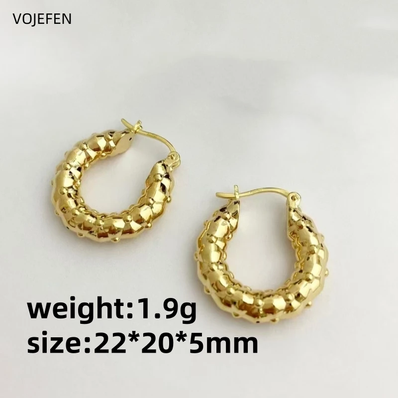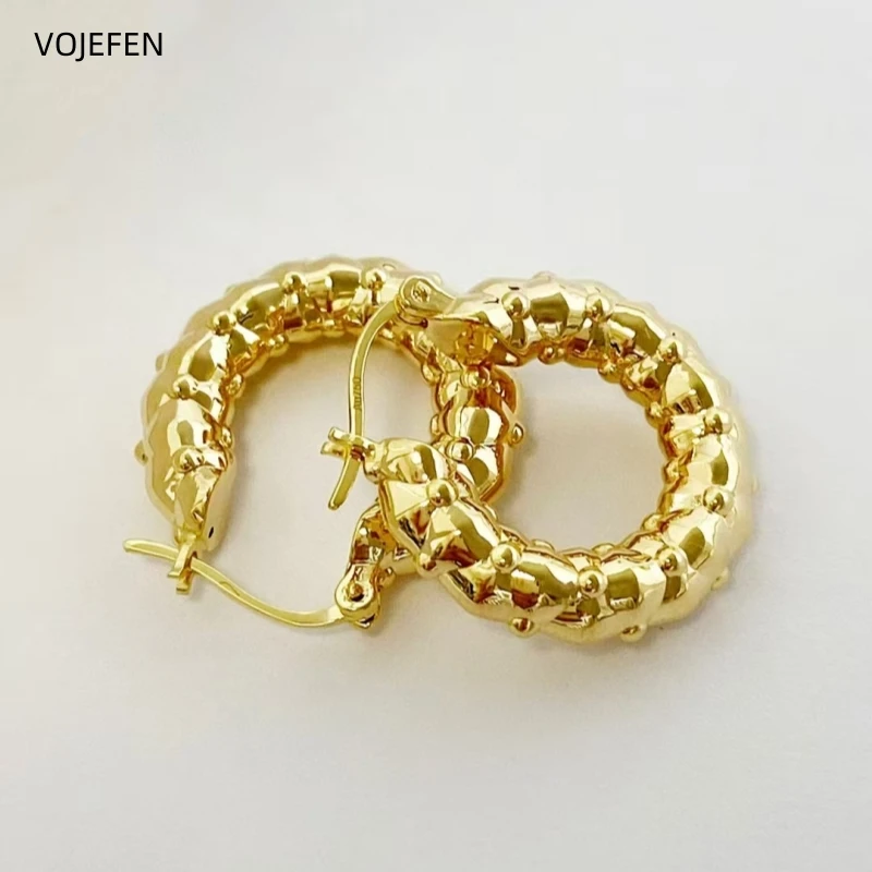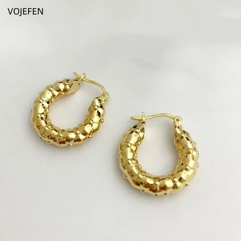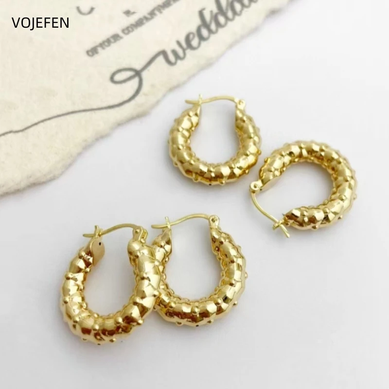 VOJEFEN 18K Gold Hoops Stud Earrings Fine Jewelry Genuine AU750 Yellow/White Gold Italian Crafts Pure Gold Jewellery Certified