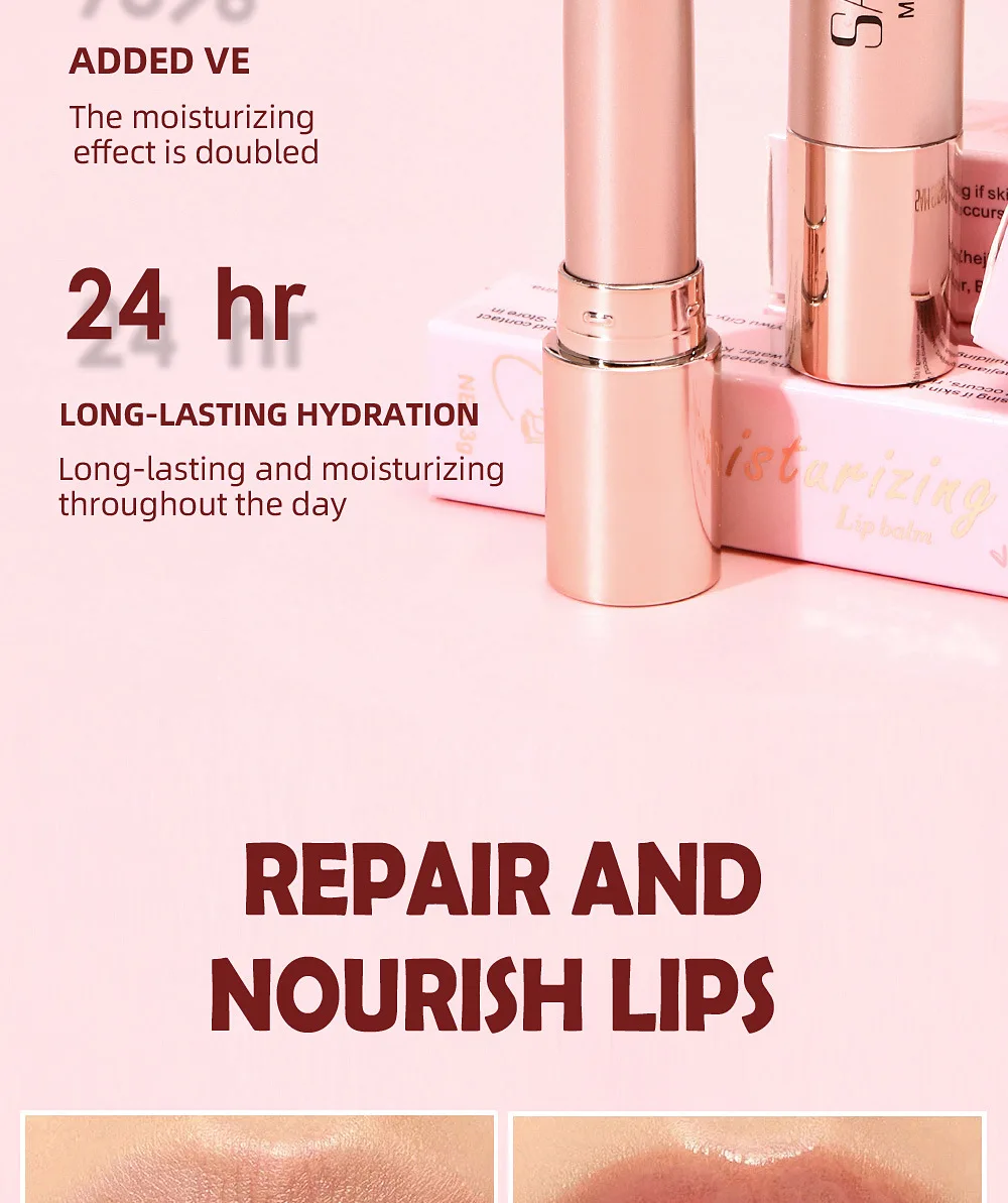 Use it at any time to improve lip dryness and moisturize the whole day. It can also be used as a lipstick base.